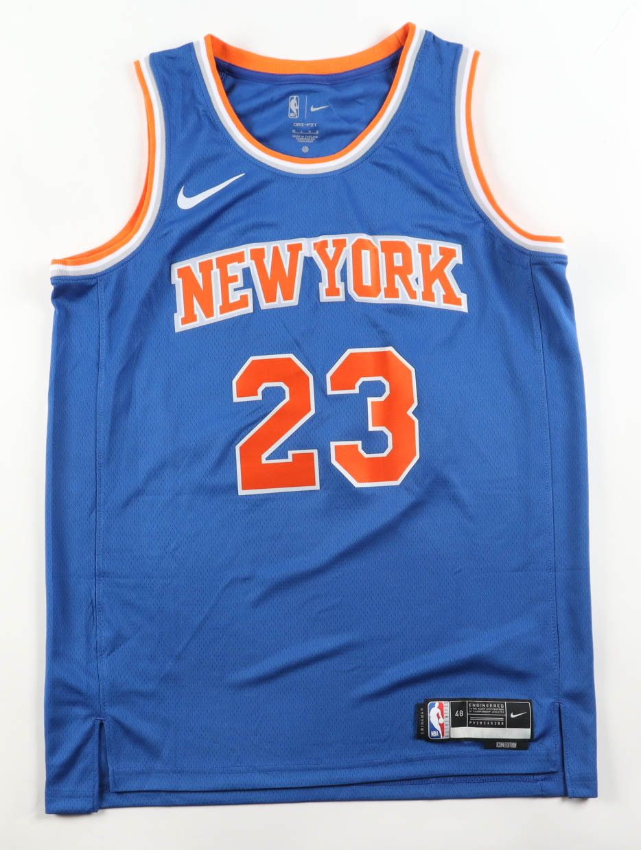 Nike jersey. Everything is pressed on, size 48. Hand-signed by Mitchell Robinson (New York Knicks).