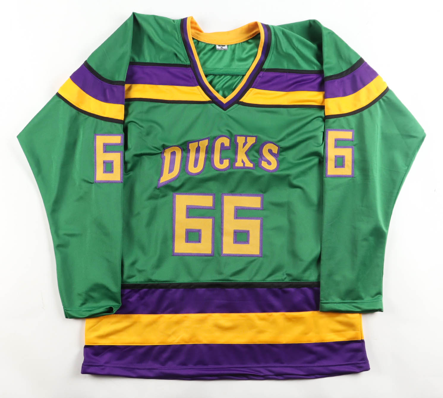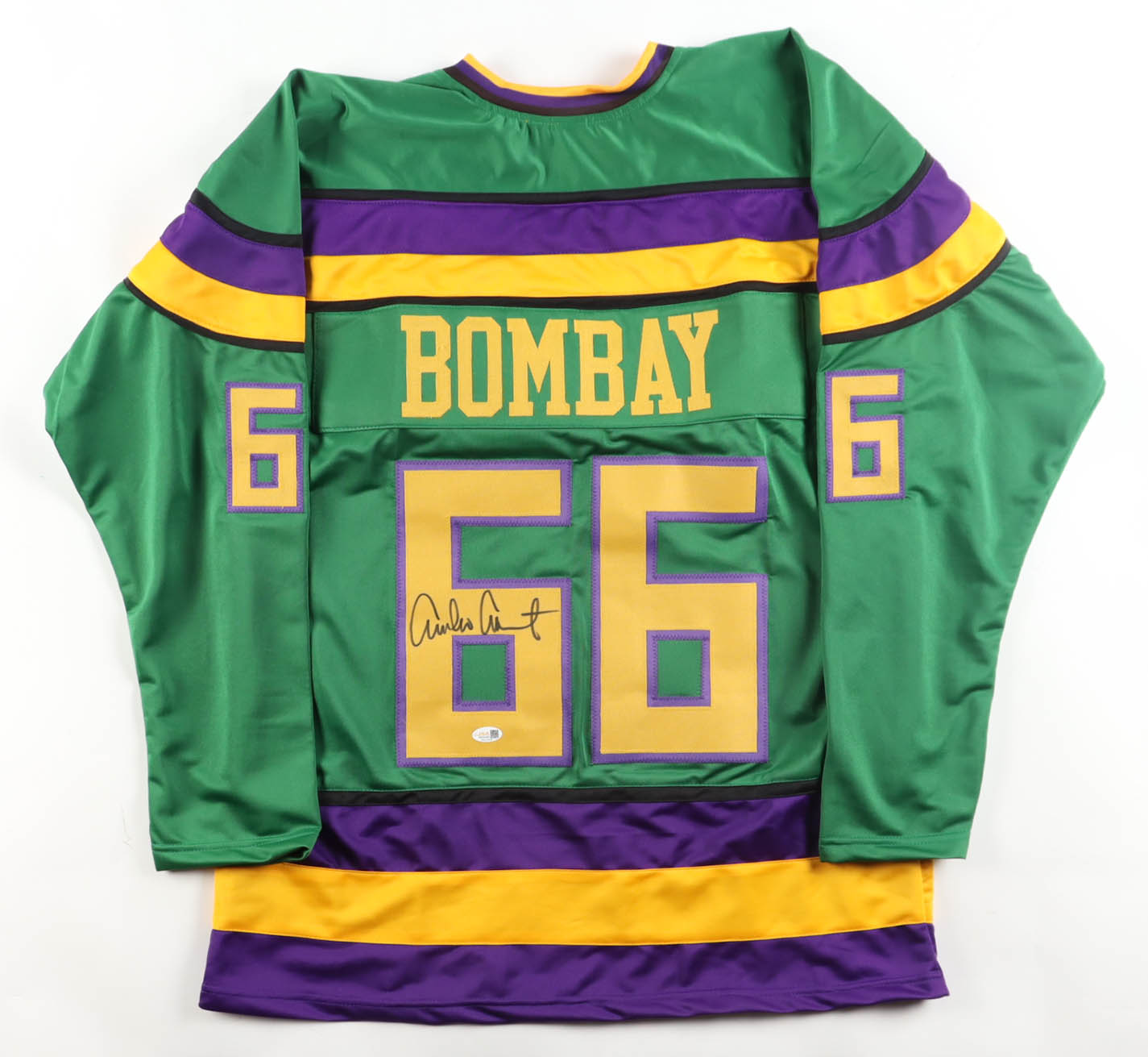 Custom jersey with everything sewn on, size XL. Hand-signed by Emilio Estevez (Gordon Bombay).