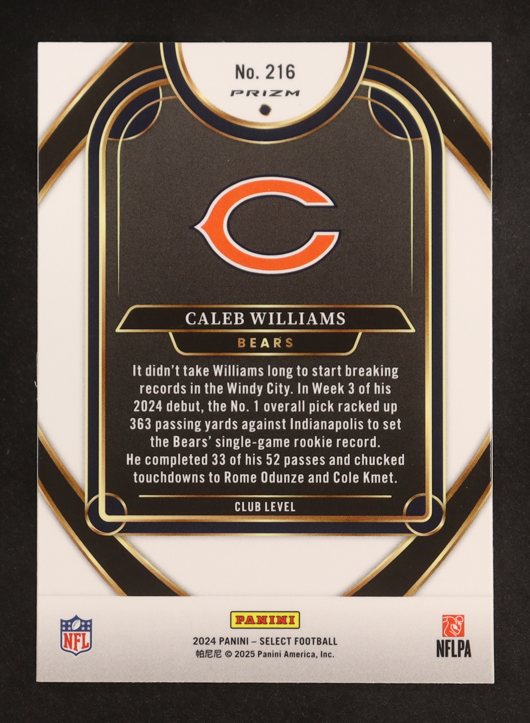 Caleb Williams 2024 Select Prizm Black and Orange Shock #216 RC