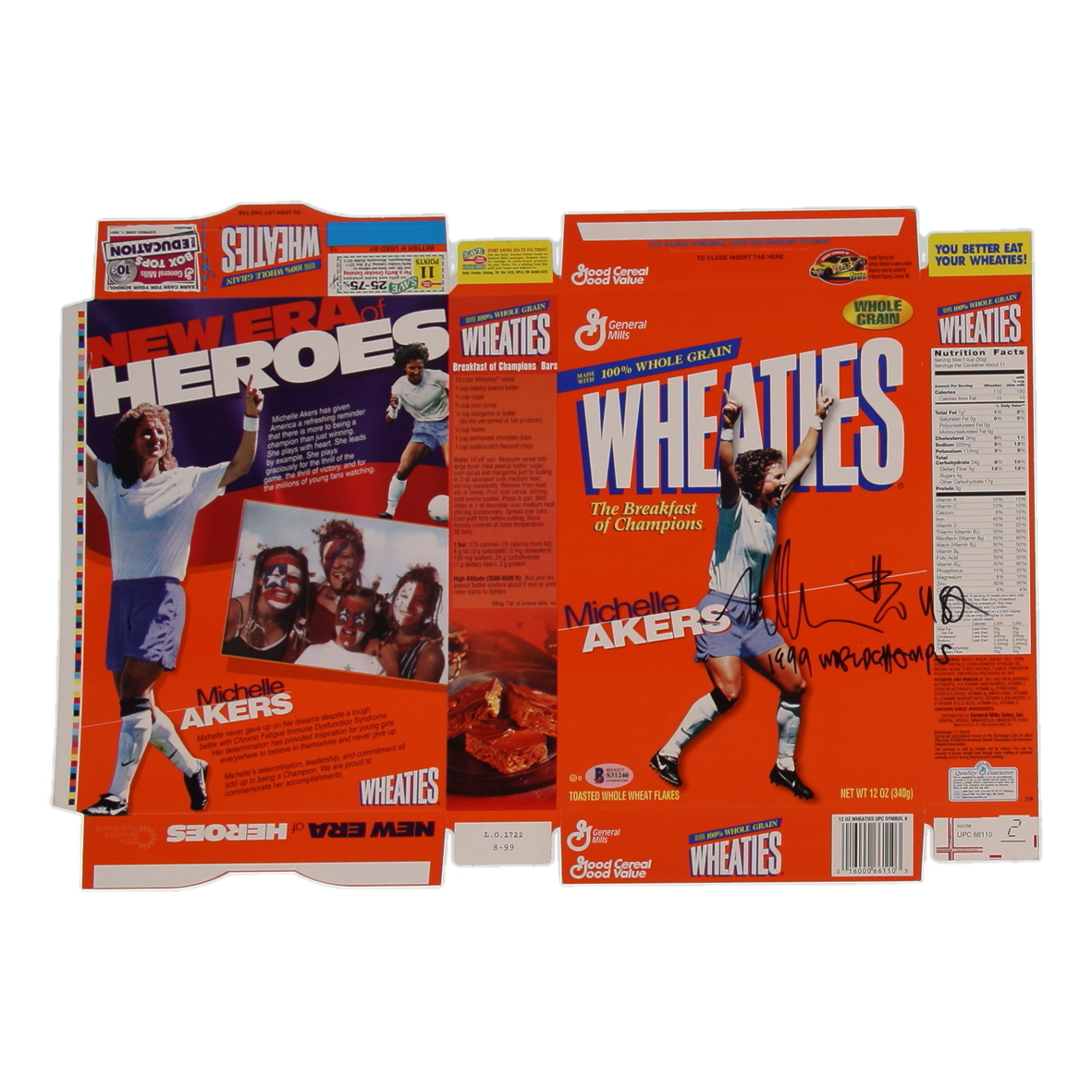 Michelle Akers Signed Wheaties Cereal Box Inscribed "USA" & "1999 World Champs" (Beckett)