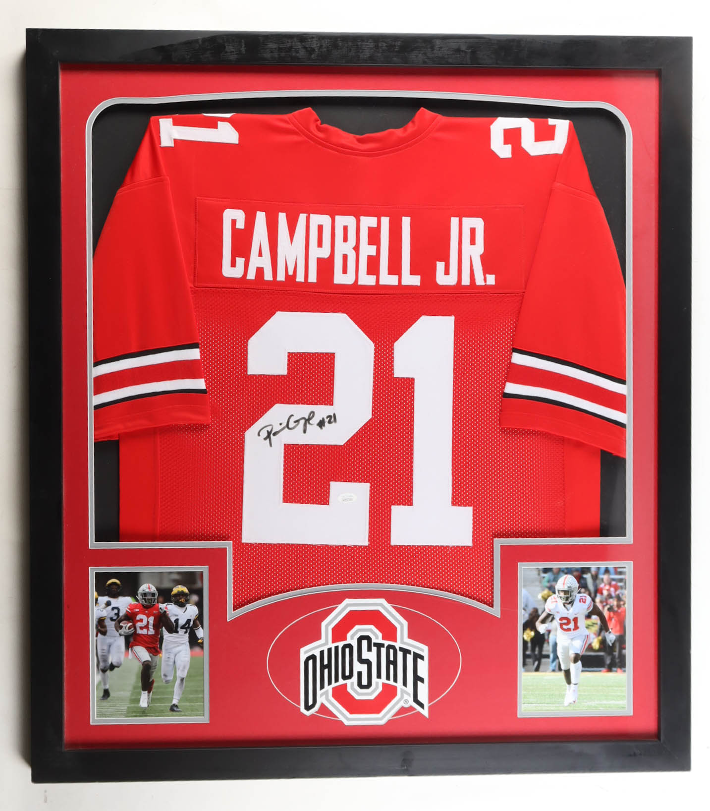 Custom frame measures 34" x 38” in size and features a jersey that has been hand-signed by Parris Campbell Jr.
