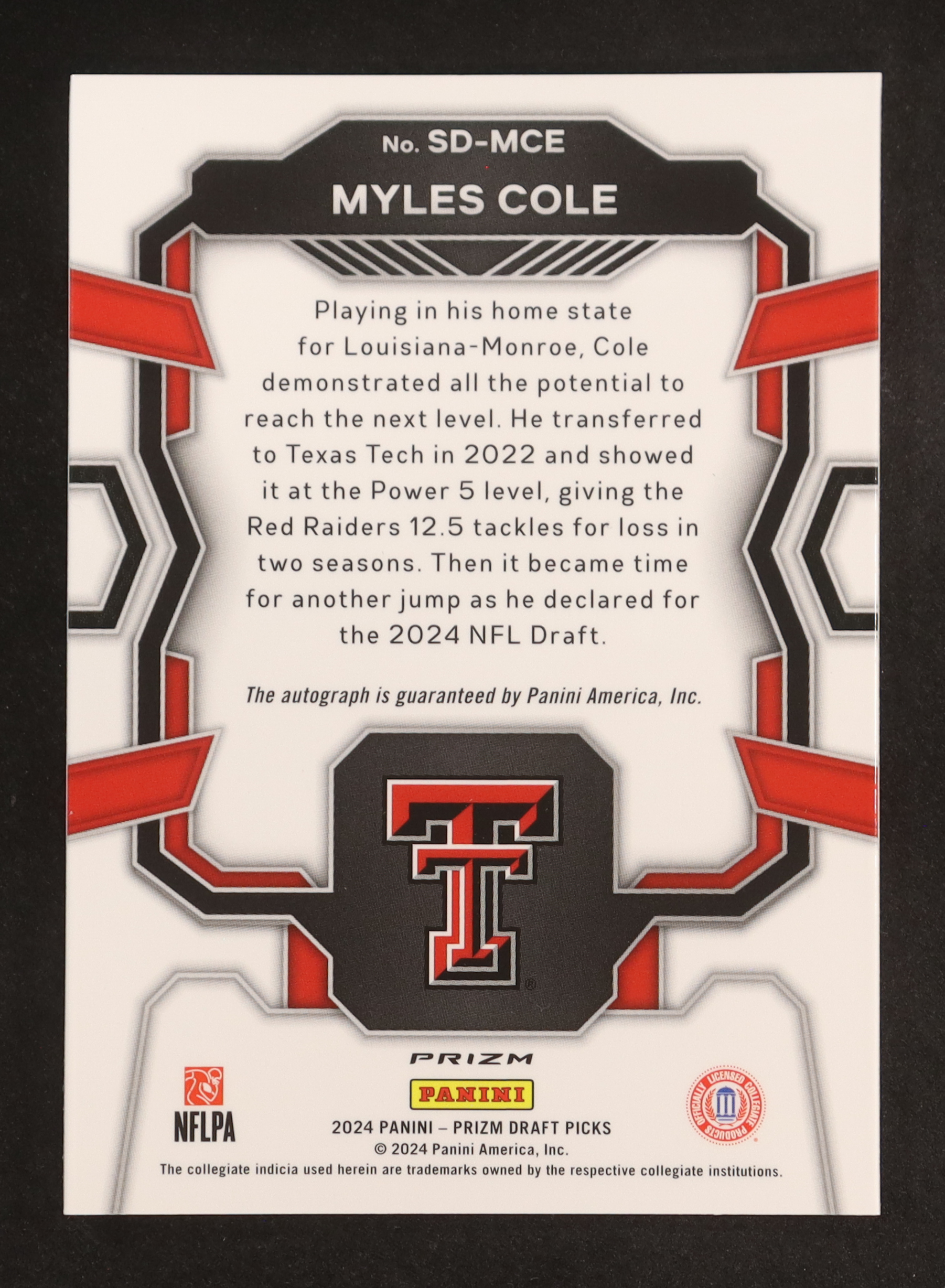 Please see photos for details regarding the condition of the card (Texas Tech Red Raiders).