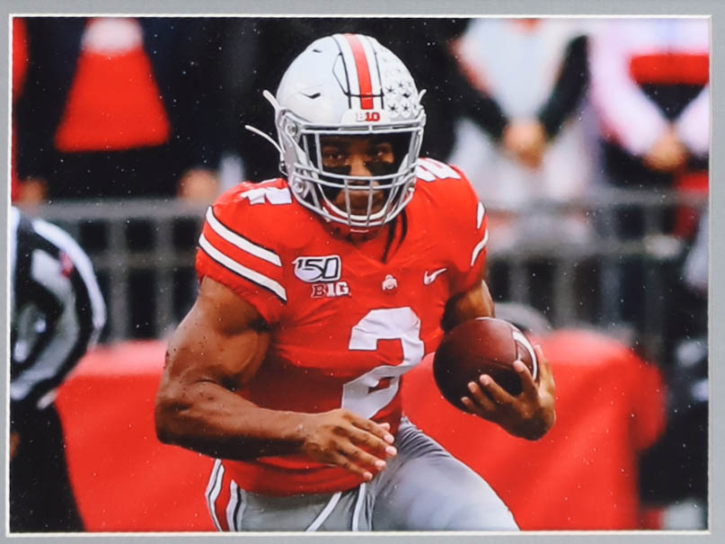 Custom frame measures 34" x 37” in size and features a jersey that has been hand-signed by J.K. Dobbins.