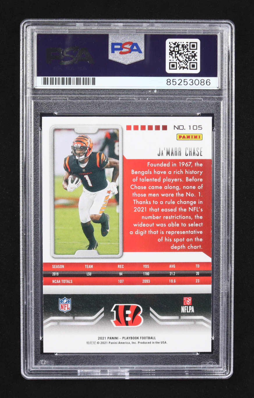 Ja'Marr Chase Signed 2021 Panini Playbook #105 RC (PSA)