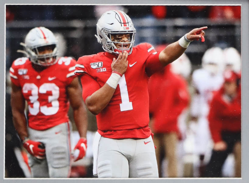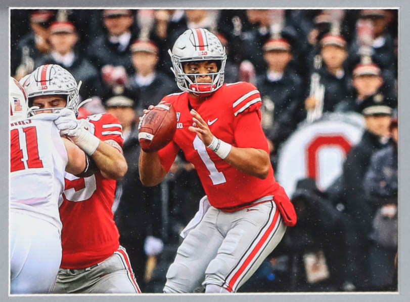 Custom frame measures approximately 35" x 38" in size and features a jersey hand-signed by Justin Fields.