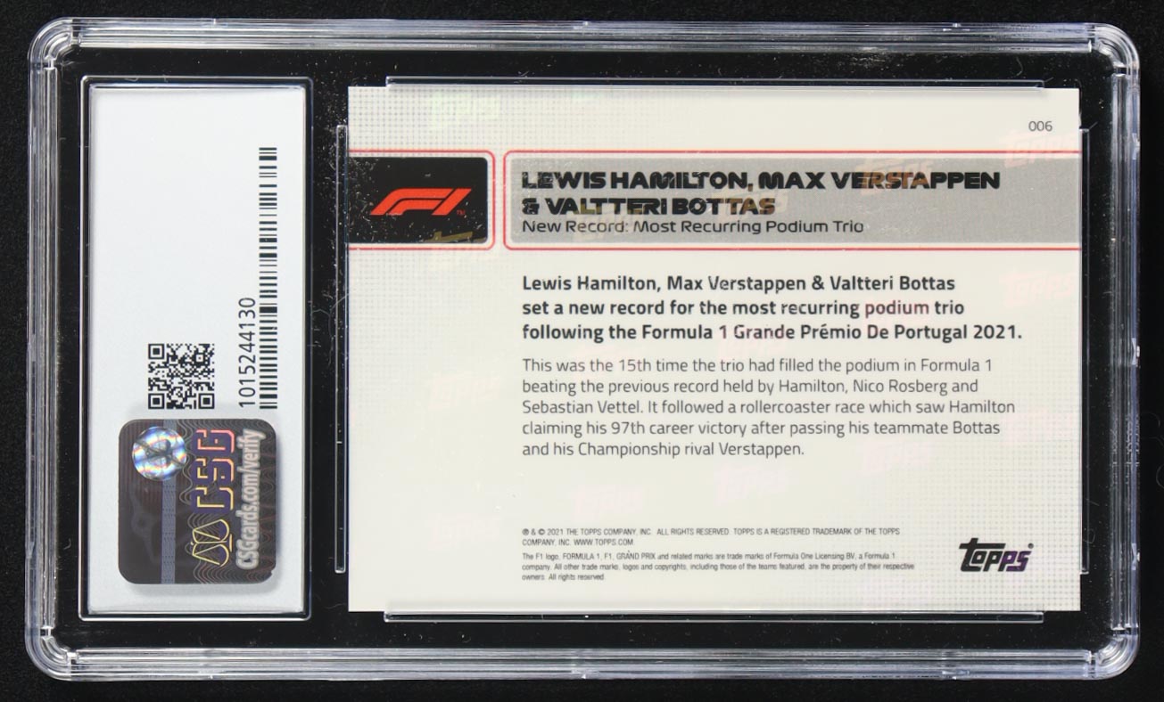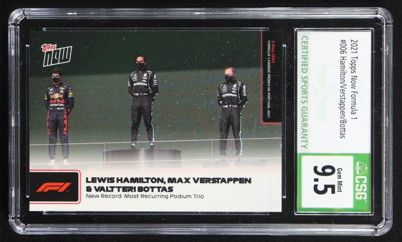 Lewis Hamilton / Max Verstappen / Valtteri Bottas 2021 Topps Now Formula 1 #6 (CSG 9.5)