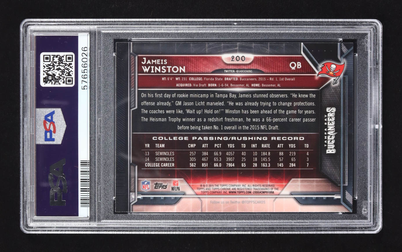 Jamies Winston 2015 Topps Chrome Throwing Refractor #200 RC (PSA 10)
