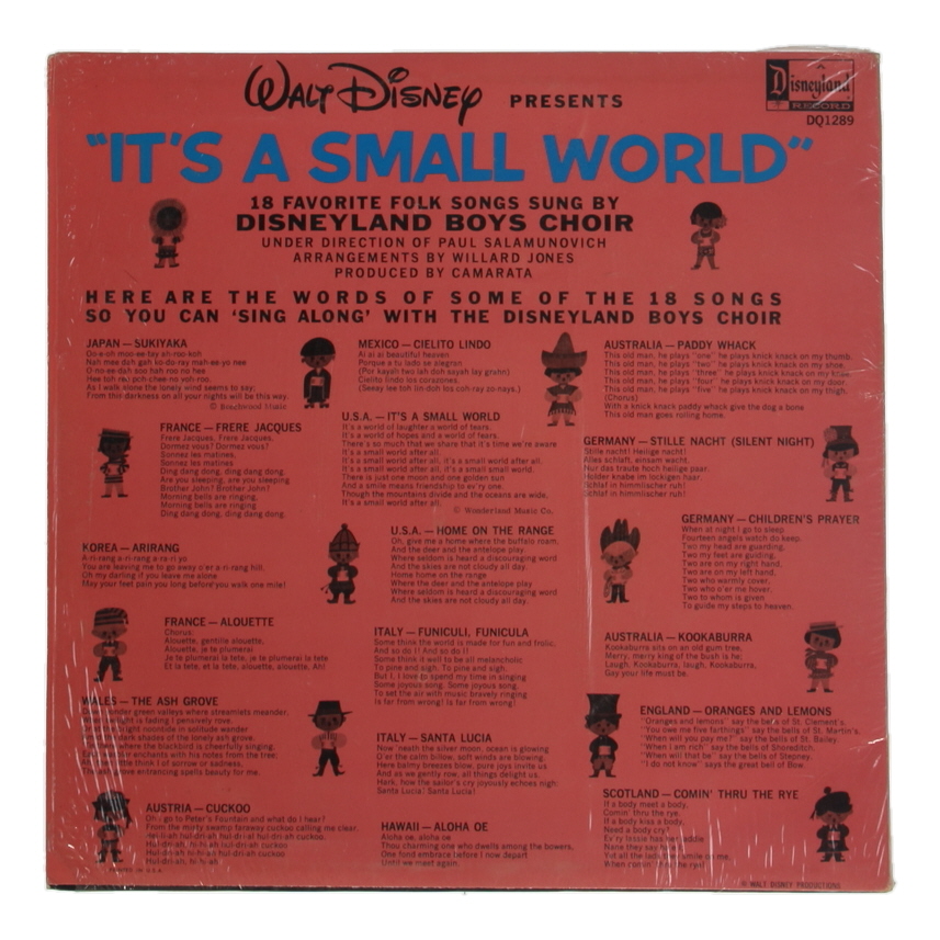1965 Vintage Disneyland "It's A Small World" Vintage Vinyl LP with Original Cello Wrap