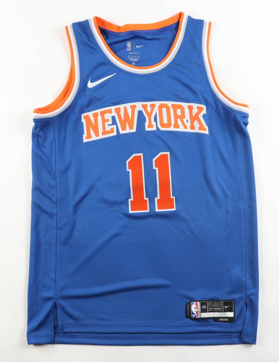 Nike jersey with everything pressed on, size 48. Hand-signed by Jalen Brunson (New York Knicks).