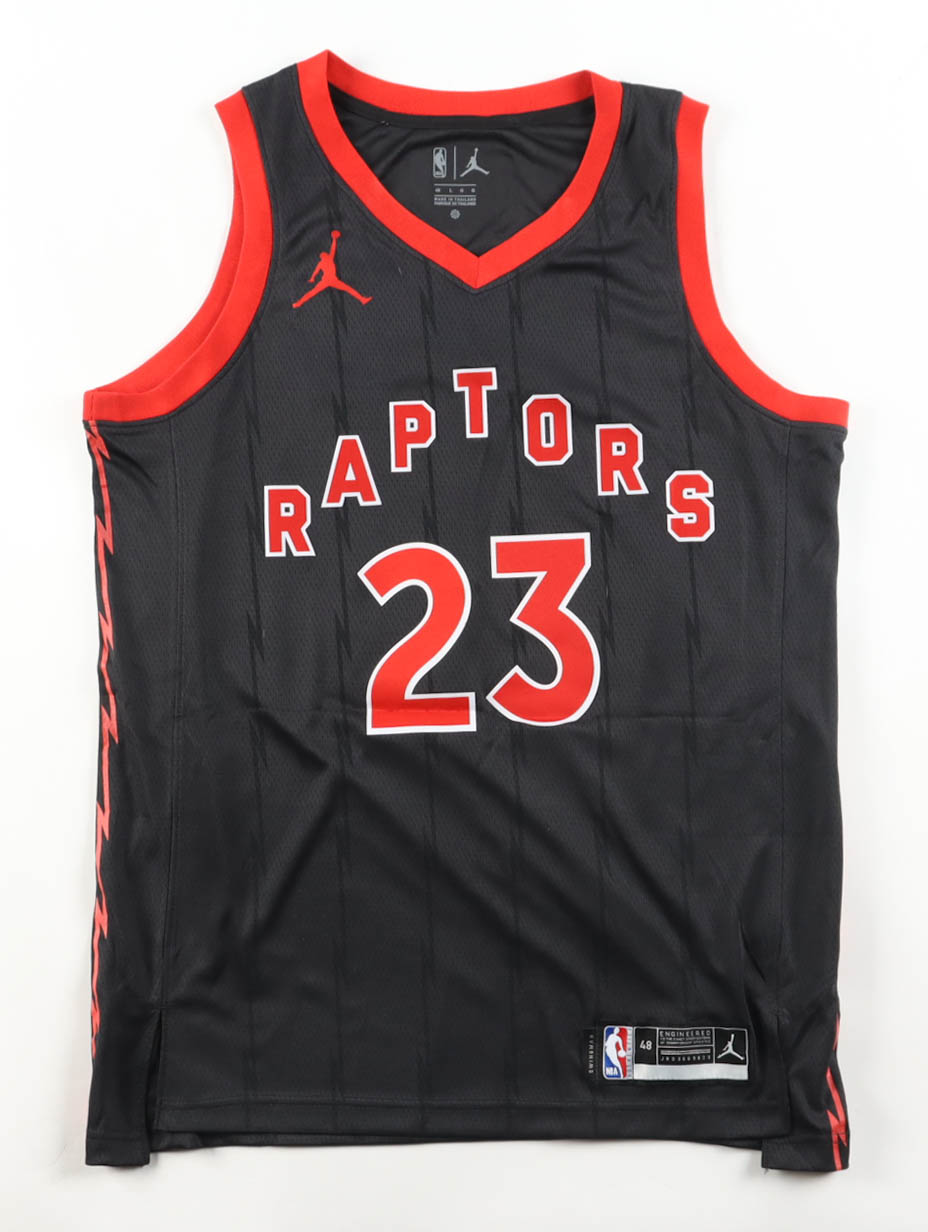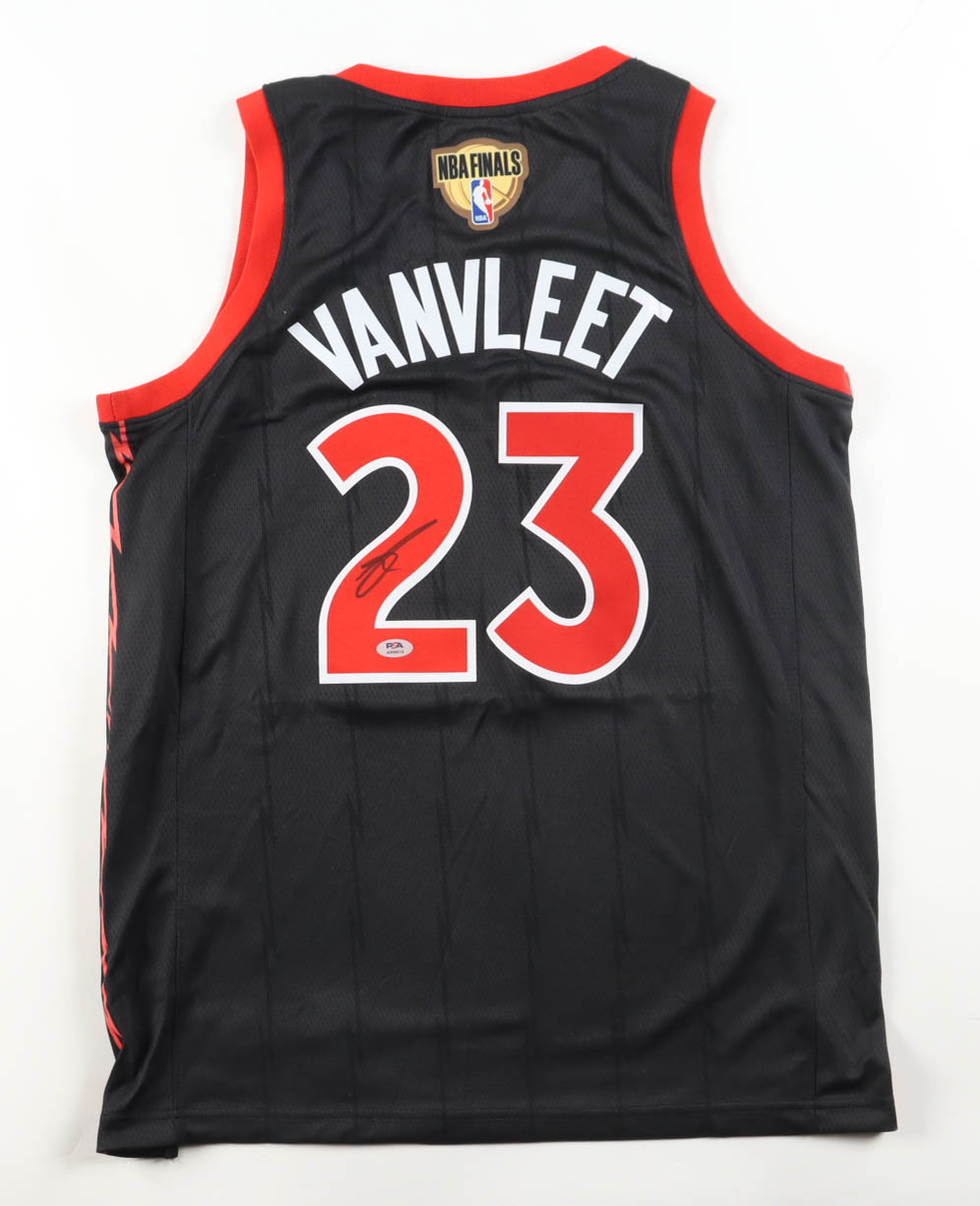 Jordan jersey. Everything is pressed on, size 48. Hand-signed by Fred VanVleet (Toronto Raptors).