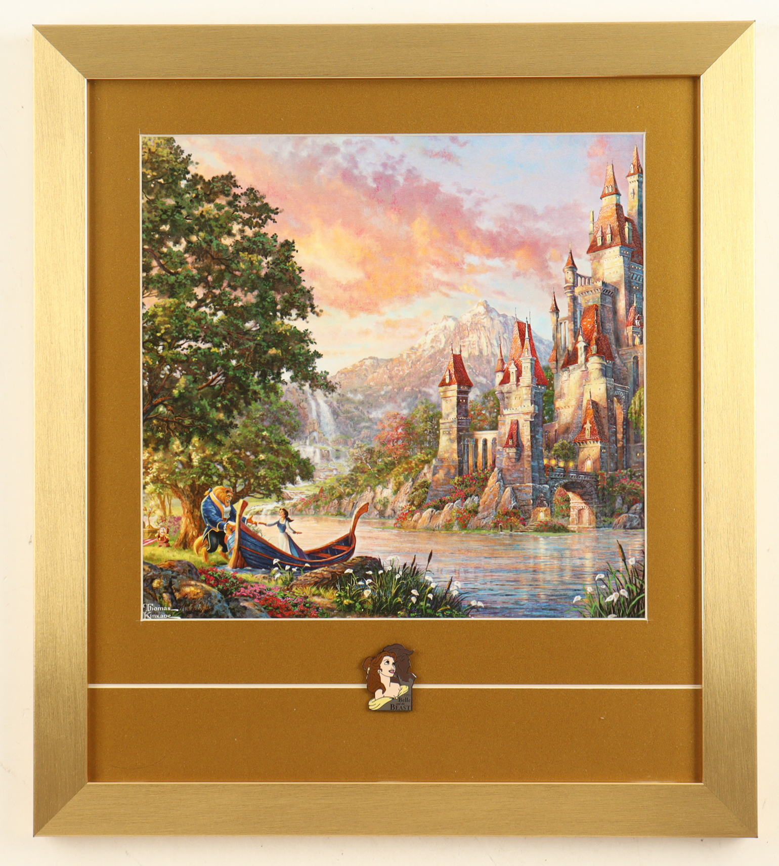 Thomas Kinkade "Beauty and the Beast" Custom Framed Print Display with Belle Pin