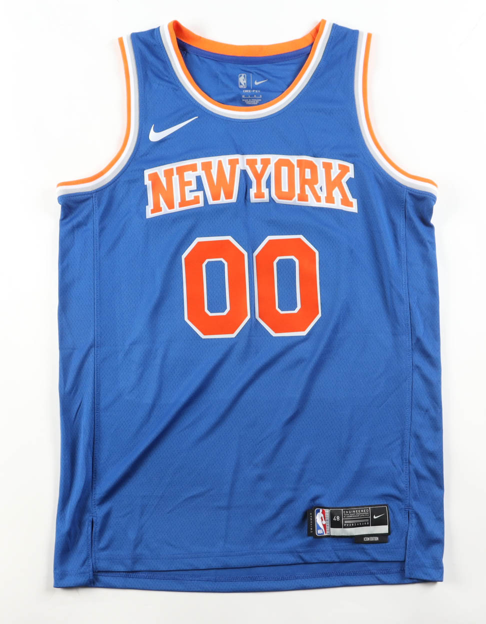 Nike jersey. Everything is pressed on, size 48. Jersey is hand-signed by Jordan Clarkson (New York Knicks).