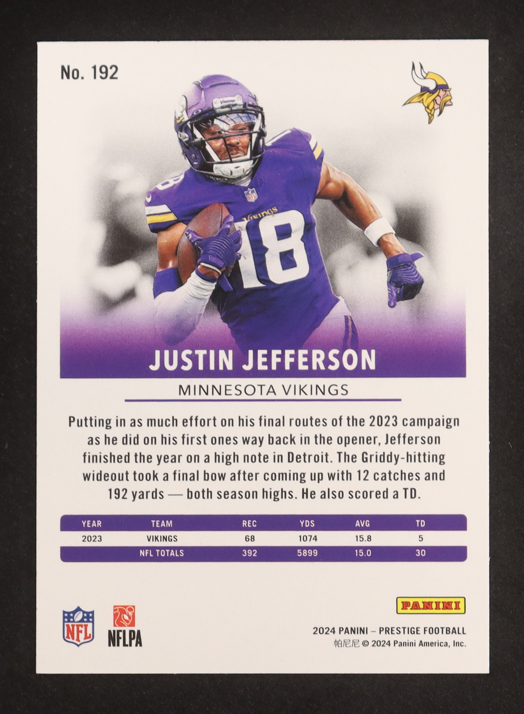 Justin Jefferson 2024 Prestige Xtra Points Diamond #192
