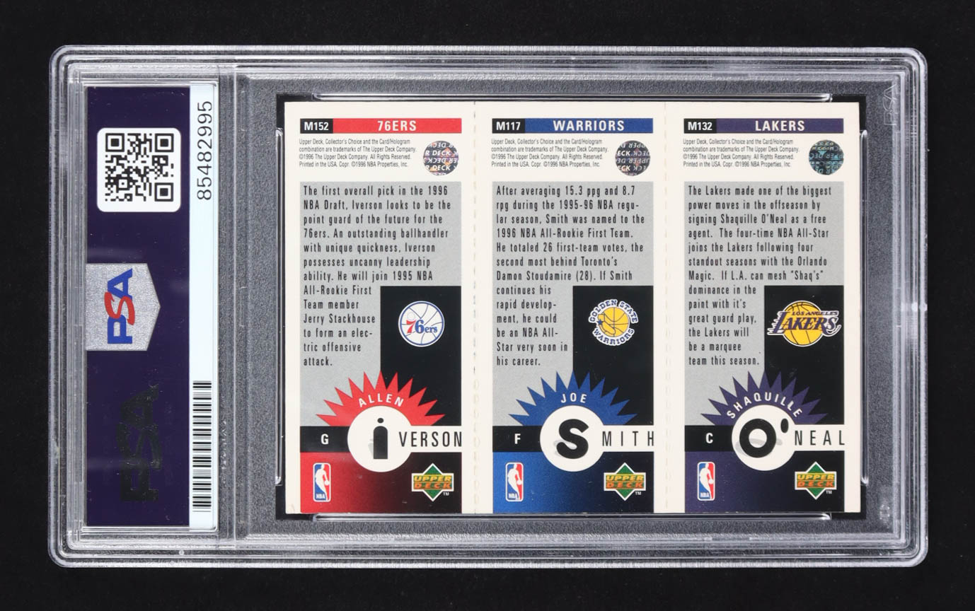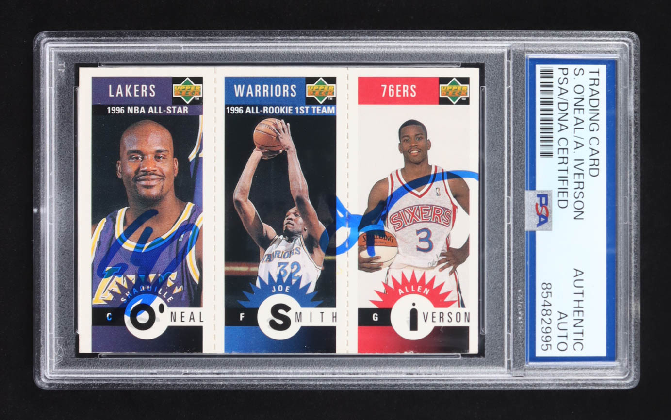 Shaquille O'Neal / Allen Iverson / Joe Smith Signed 1996 Upper Deck Collector's Choice #M152 #M117 #M132 RC (PSA)