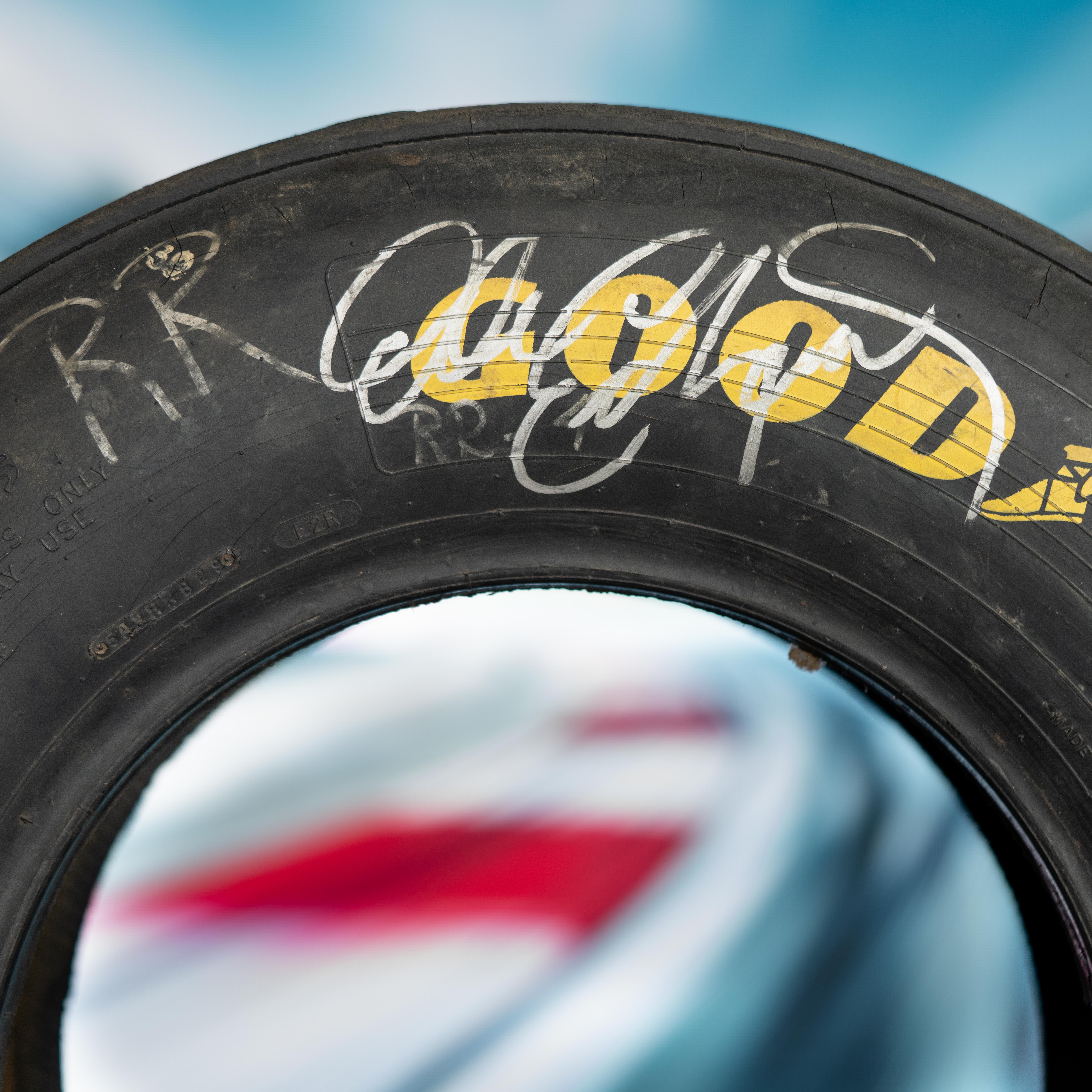 Goodyear full-size racing tire has been hand-signed by racing legend, Dale Earnhardt Sr.!