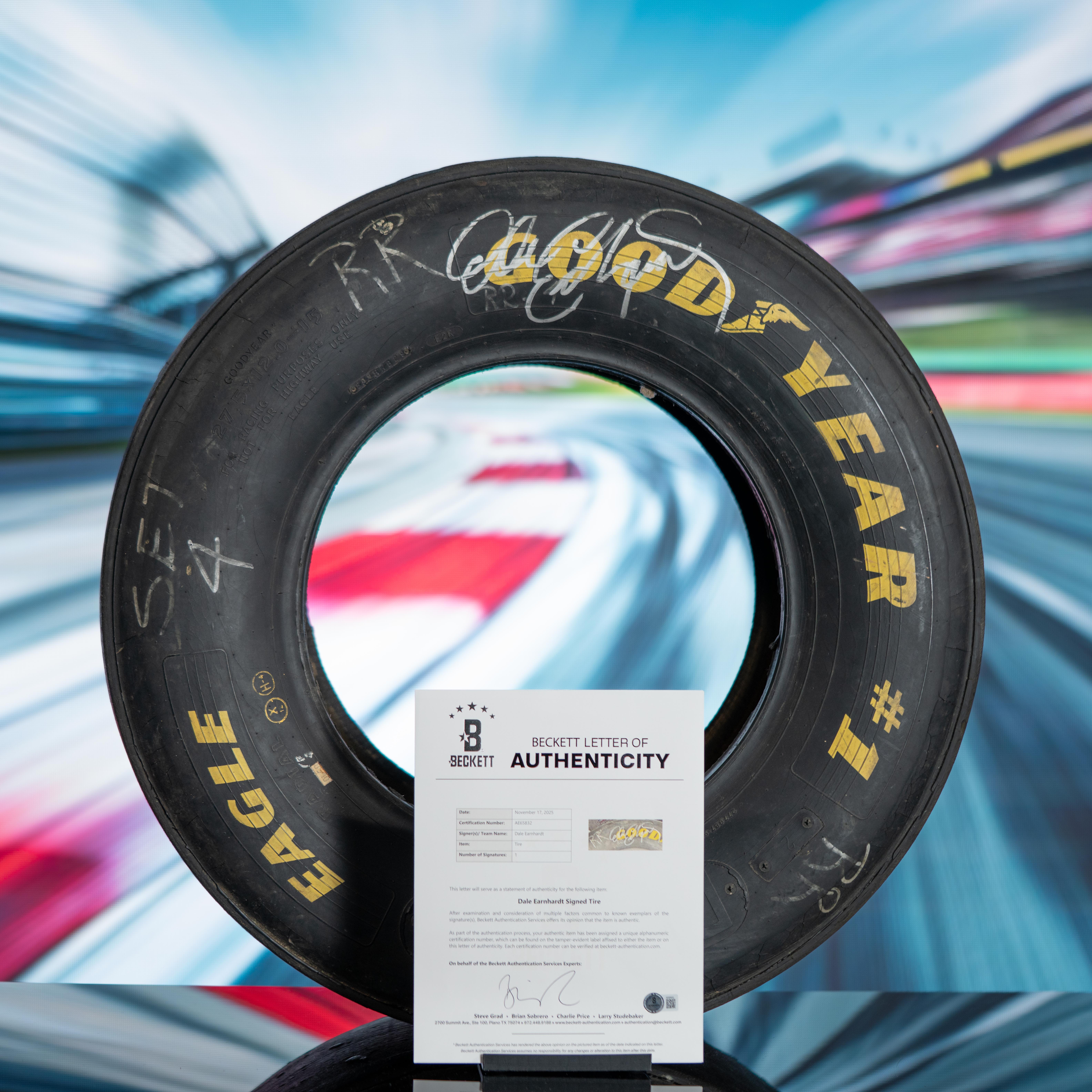 Dale Earnhardt Sr. Signed Full-Size Goodyear Racing Tire (Beckett)