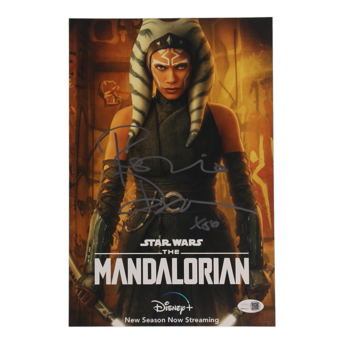 Photo measures 8" x 12" in size and has been hand-signed and inscribed by Rosario Dawson (Ahsoka Tano).