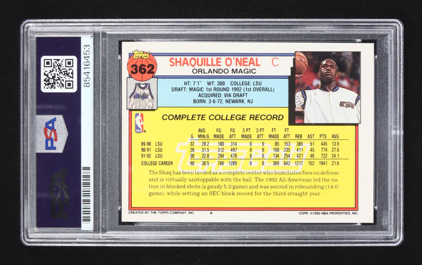 Shaquille O'Neal Signed 1992 Topps Gold #362 RC (PSA)