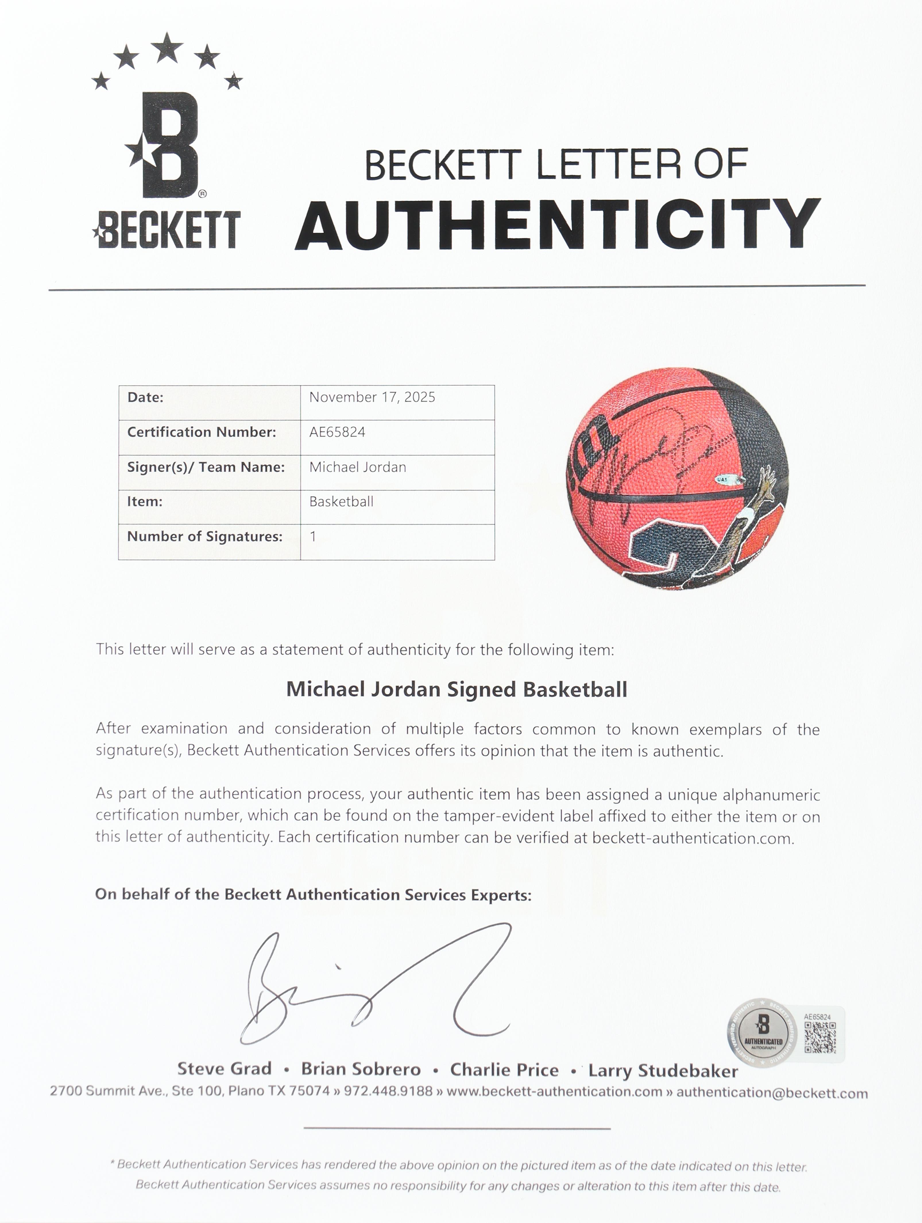 Michael Jordan Signed "Jordan" Logo Basketball with Display Case (Beckett & GOAT)