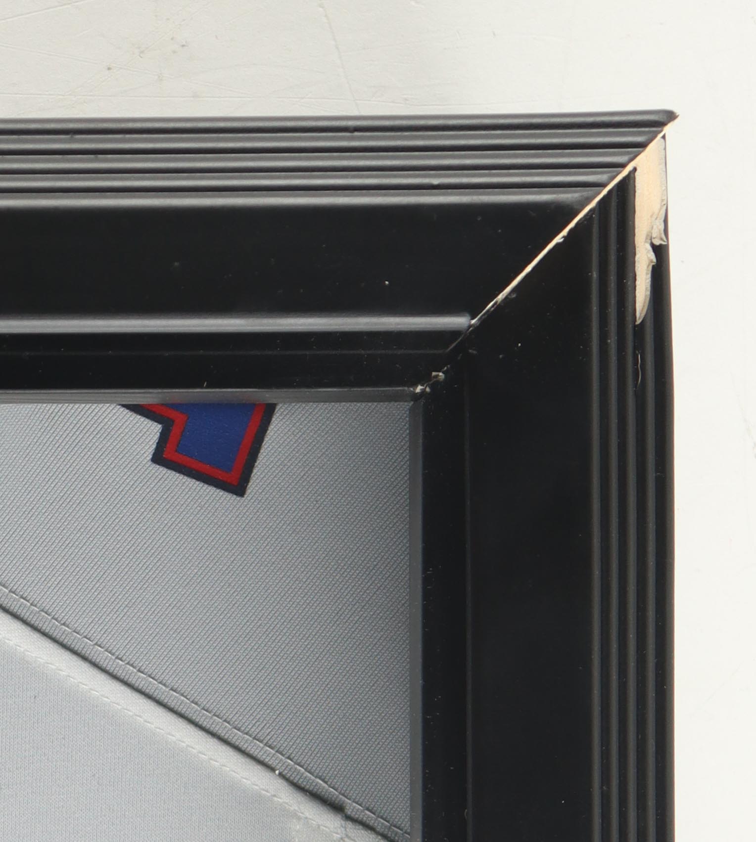 Custom shadowbox measures 23" x 25.5" x 4" and features a jersey that has been hand-signed by Josh Allen (Buffalo Bills). Please note, the frame is broken in the corners and the glass pops out. See photos for details.