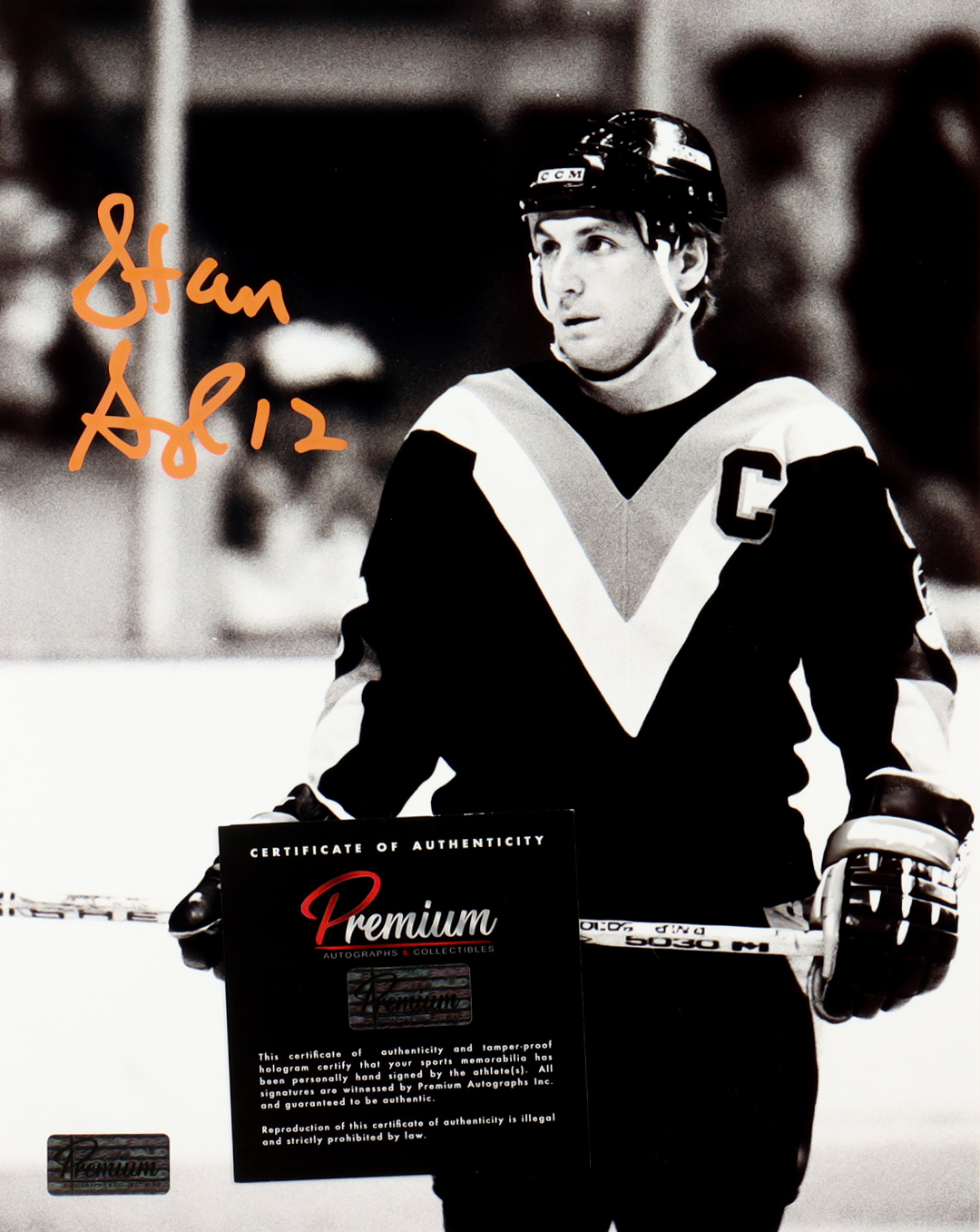 Photo measures approximately 8" x 10" in size. Hand-signed by Stan Smyl (Vancouver Canucks).