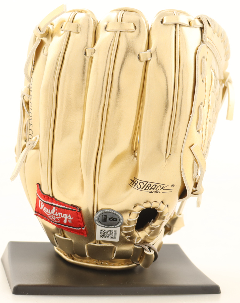 Mini Gold Glove measures approximately 6" in height. Hand-signed and inscribed by Greg Maddux (Texas Rangers, HOF).