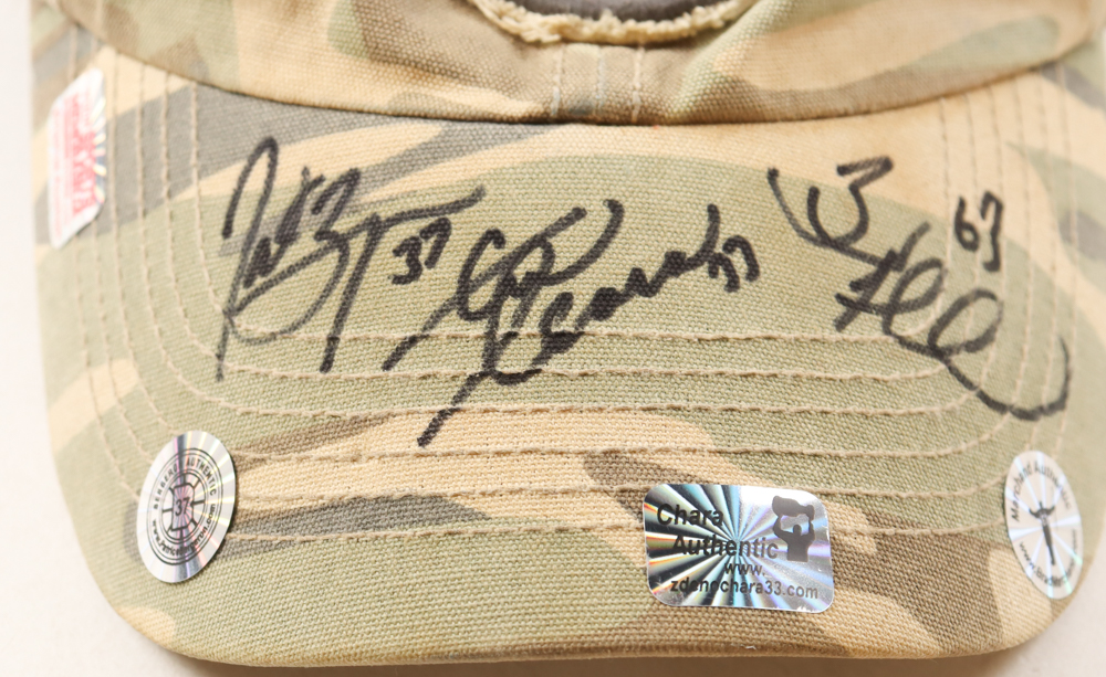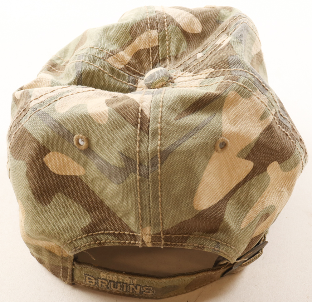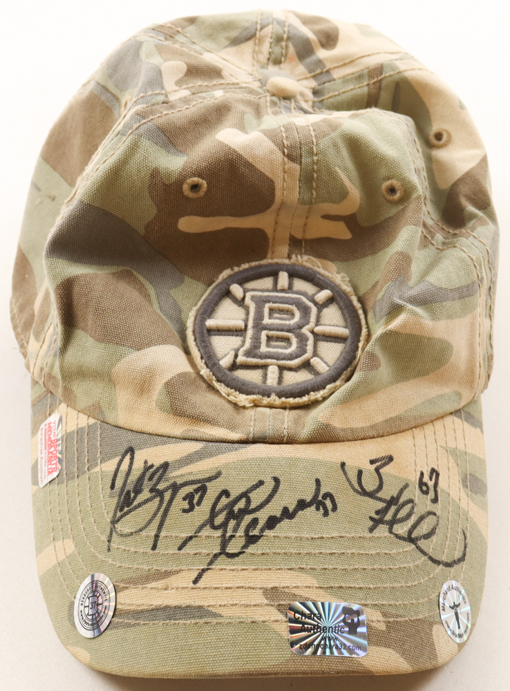 Boston Bruins adjustable hat has been hand-signed by Brad Marchand, Zdeno Chara and Patrice Bergeron.