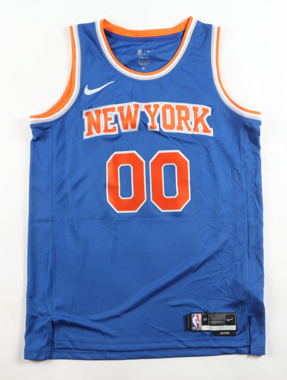 Nike jersey. Everything is pressed on, size 48. Jersey is hand-signed by Jordan Clarkson (New York Knicks).