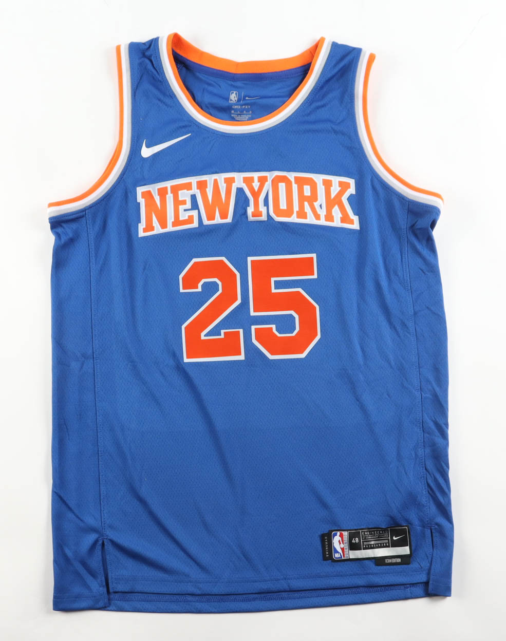 Nike authentic jersey with everything pressed on, size 48. Hand-signed by Mikal Bridges (New York Knicks).