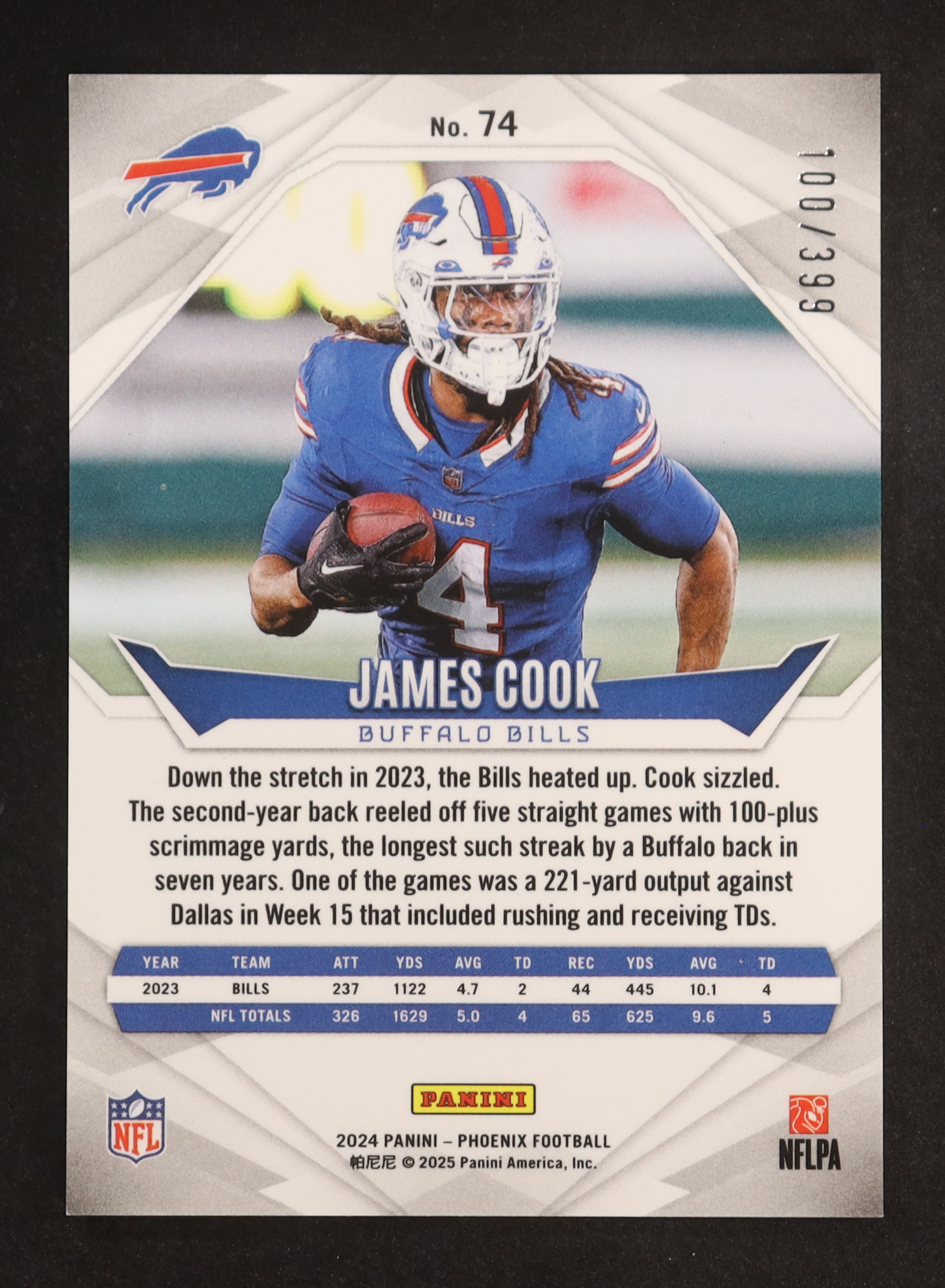 James Cook 2024 Panini Phoenix Phoenix #74 #100/399