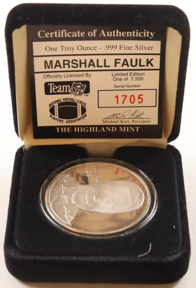 Marshall Faulk LE The Highland Mint 1 Troy Oz .999 Fine Silver Commemorative Bullion Round
