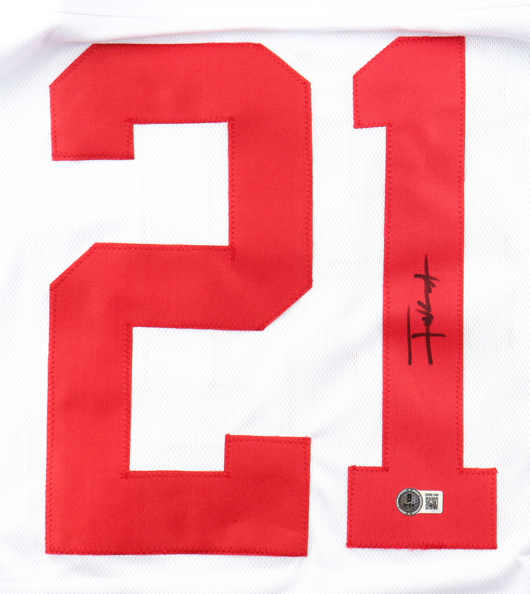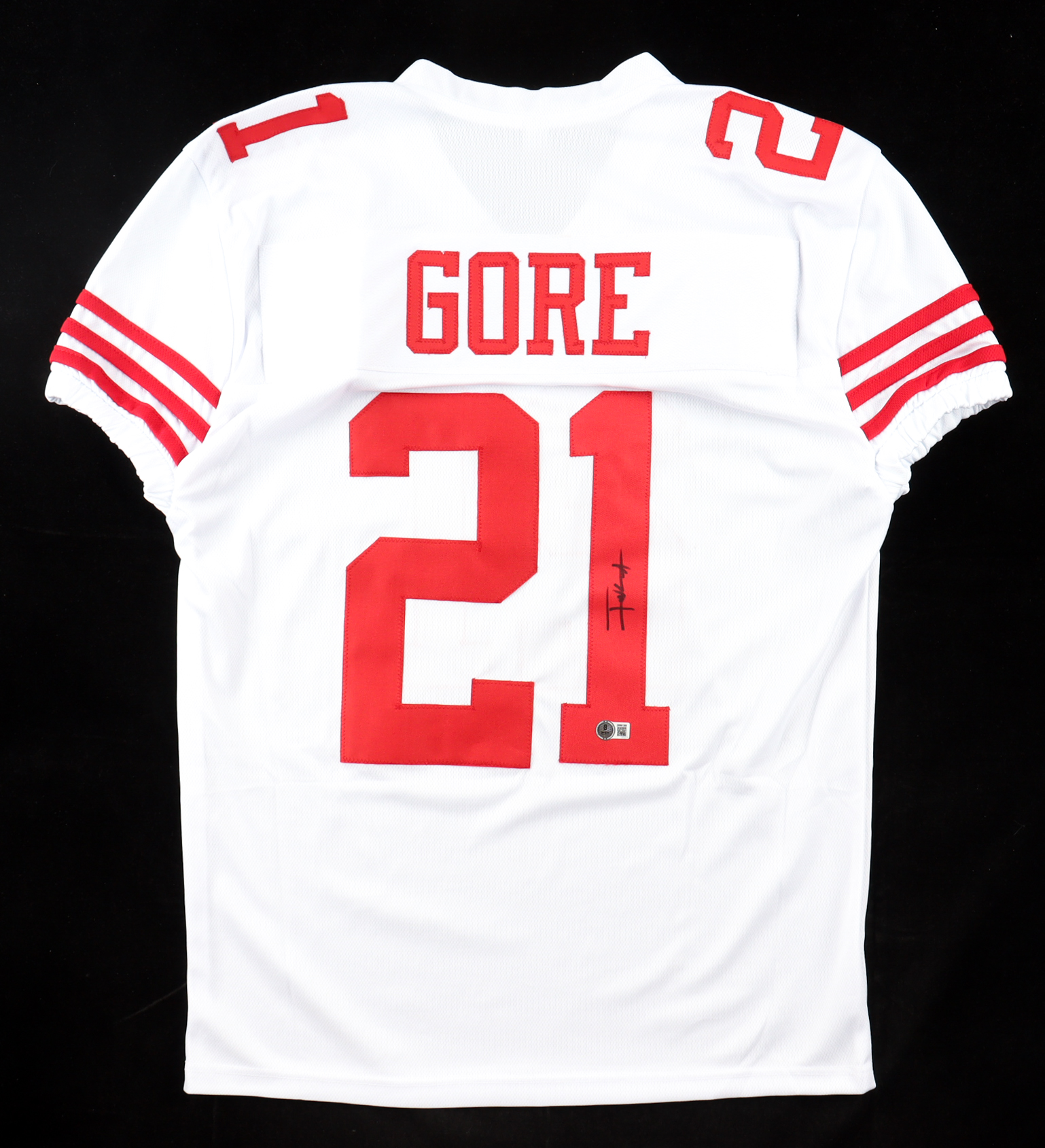 Custom jersey with everything sewn on, size XL. Hand-signed by Frank Gore (San Francisco 49ers).