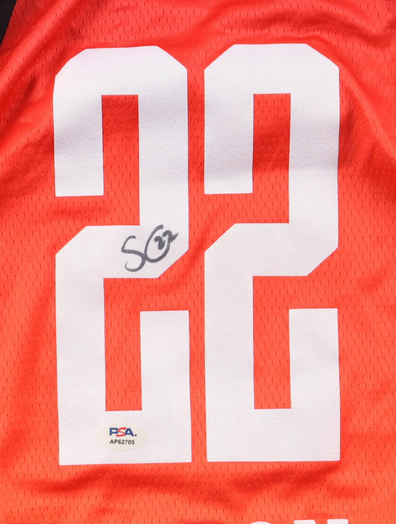 Jordan authentic jersey with everything pressed on, size L. Hand-signed by Sonia Citron.