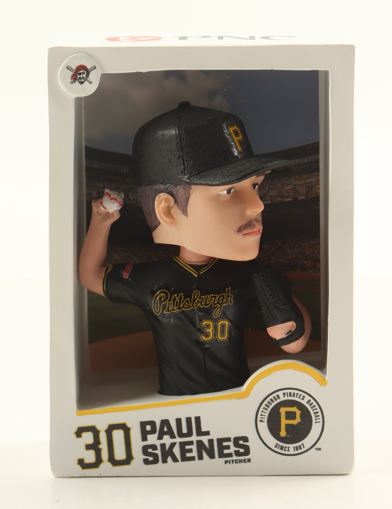 Bobblehead figure measures approximately 6" in height and features Paul Skenes (Pittsburgh Pirates). Please note, the figurine is unsigned and comes with the original packaging.