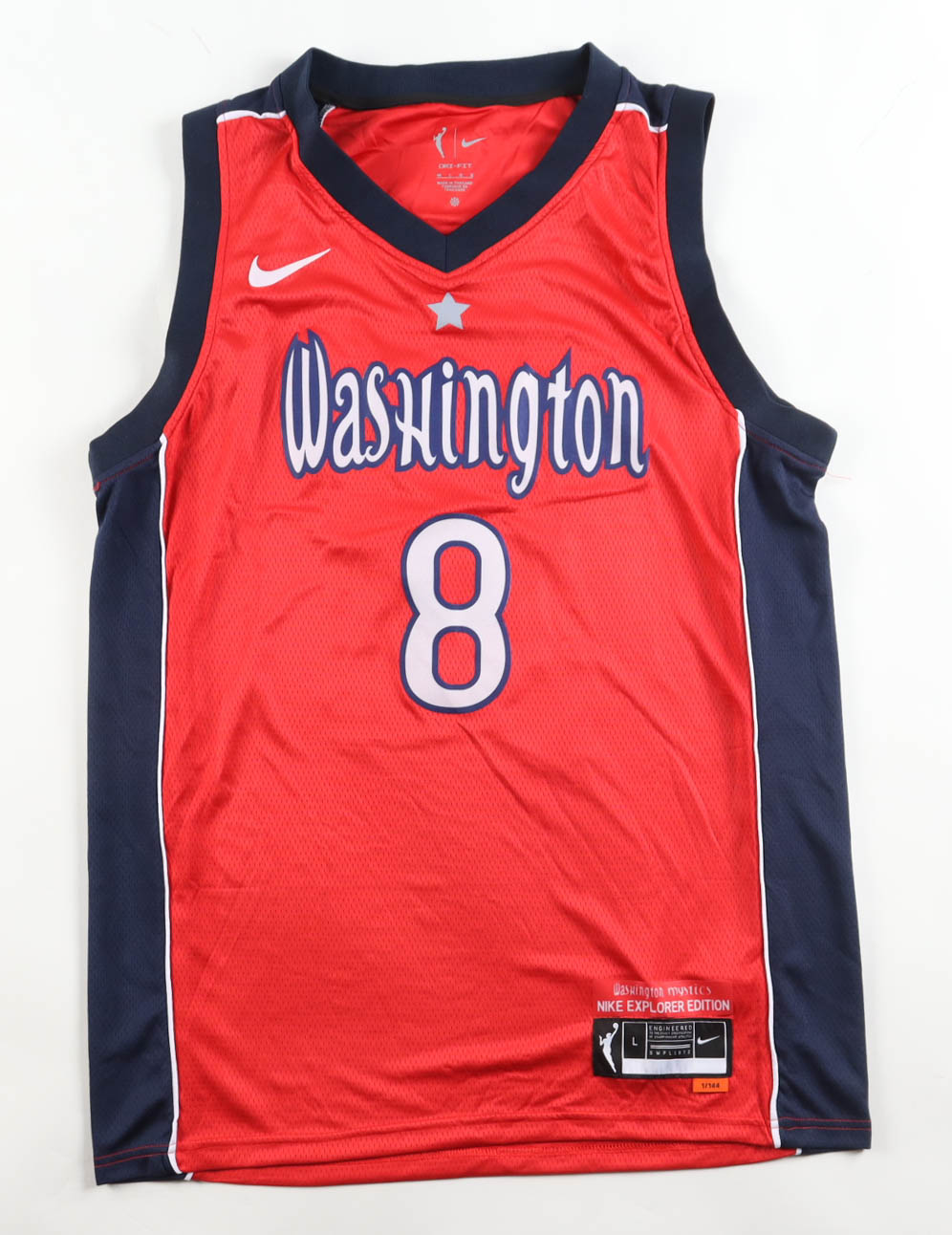 Nike authentic jersey with everything pressed on, size L. Hand-signed by Georgia Amoore (Washington Mystics).