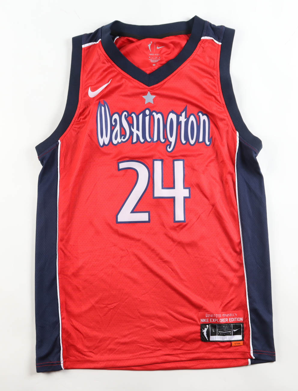 Nike authentic jersey with everything pressed on, size L. Hand-signed by Aaliyah Edwards (Washington Mystics).