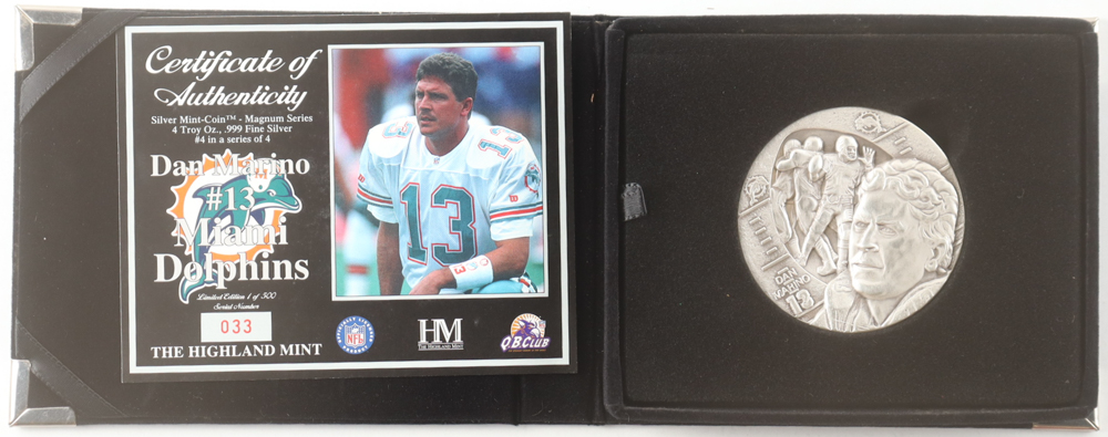 Dan Marino LE The Highland Mint Magnum Series 4 Troy Oz. Fine Silver Mint-Coin with Display Case