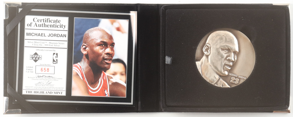 Michael Jordan LE The Highland Mint Magnum Series 4 Troy Oz. Fine Silver Mint-Coin with Display Case