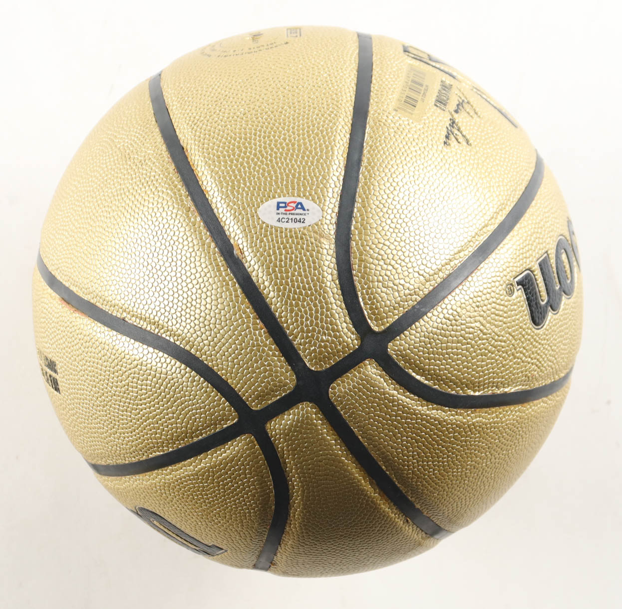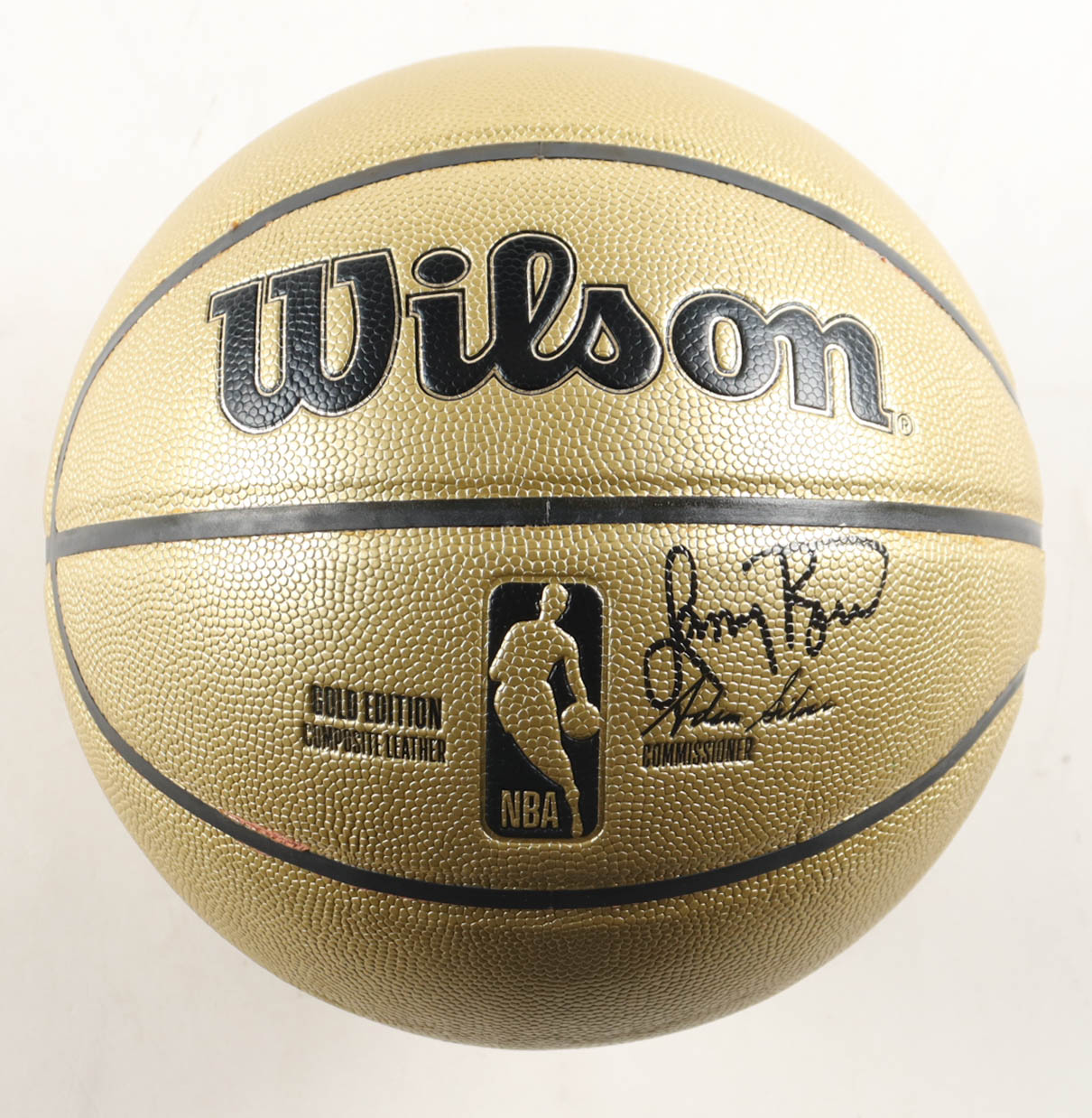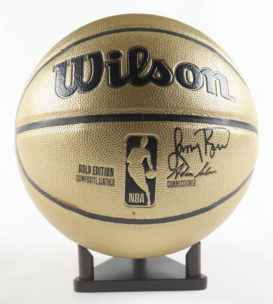 Wilson Gold Edition basketball With Display Stand has been hand-signed by Larry Bird (Boston Celtics, HOF). Display stand included as shown.