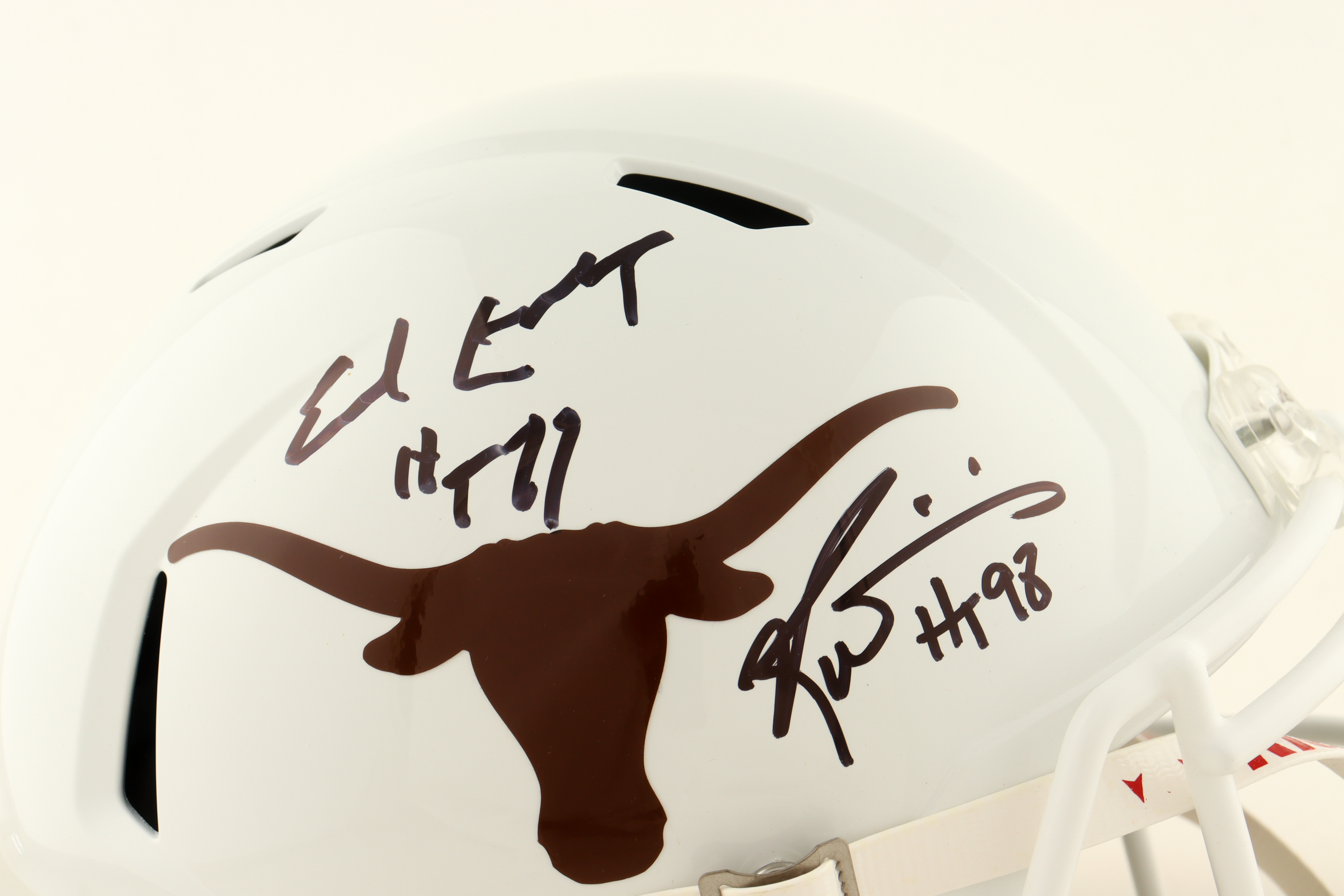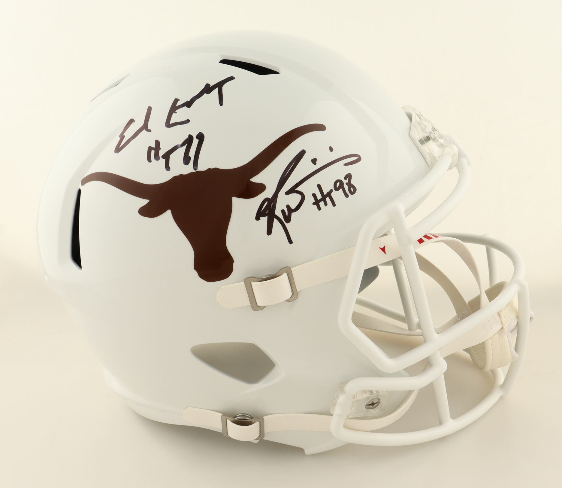 Riddell Texas Longhorns full-size replica speed helmet. Hand-signed and inscribed by Earl Campbell (HOF) and Ricky Williams.