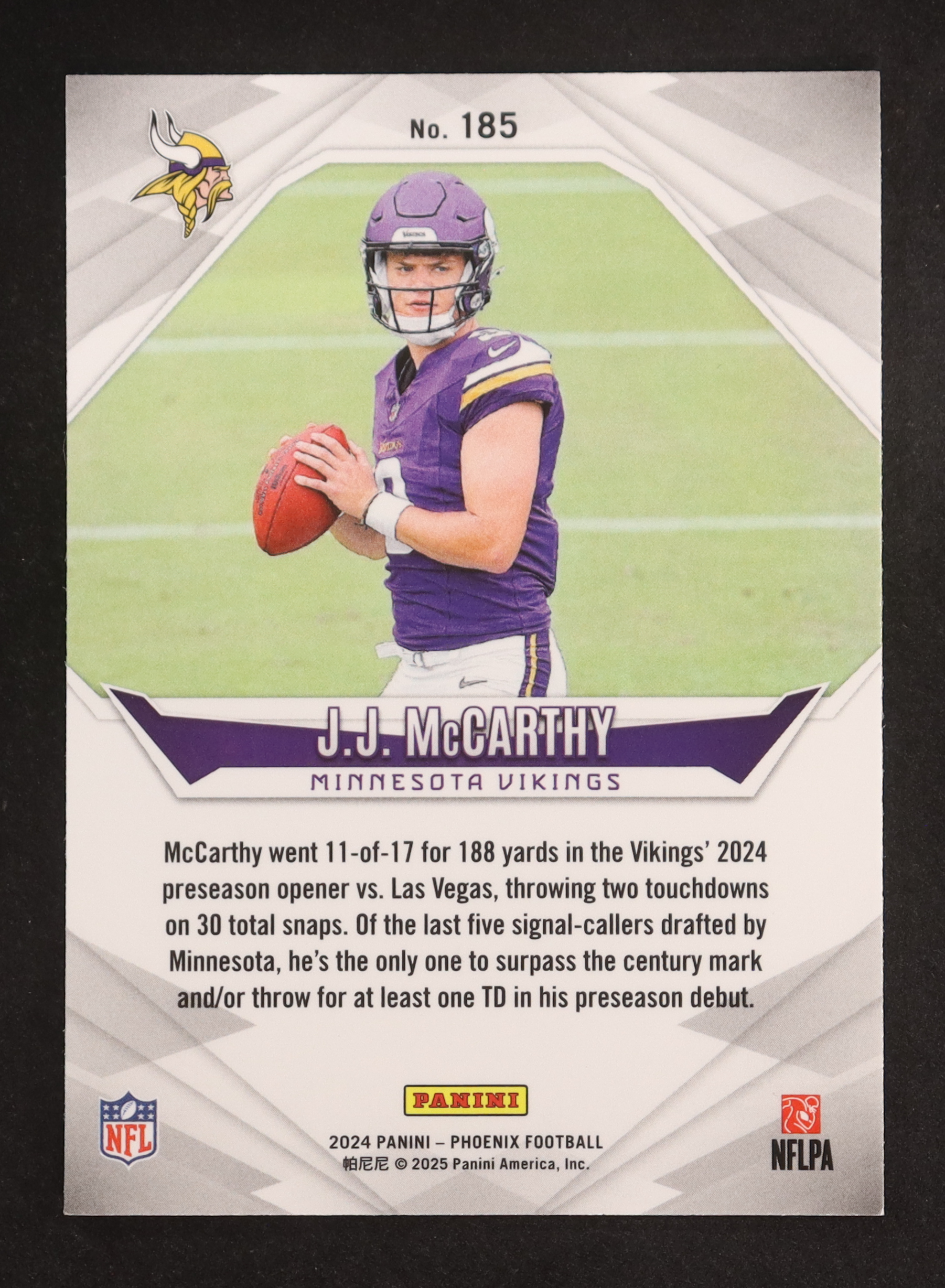 JJ McCarthy 2024 Panini Phoenix Purple #185 RC