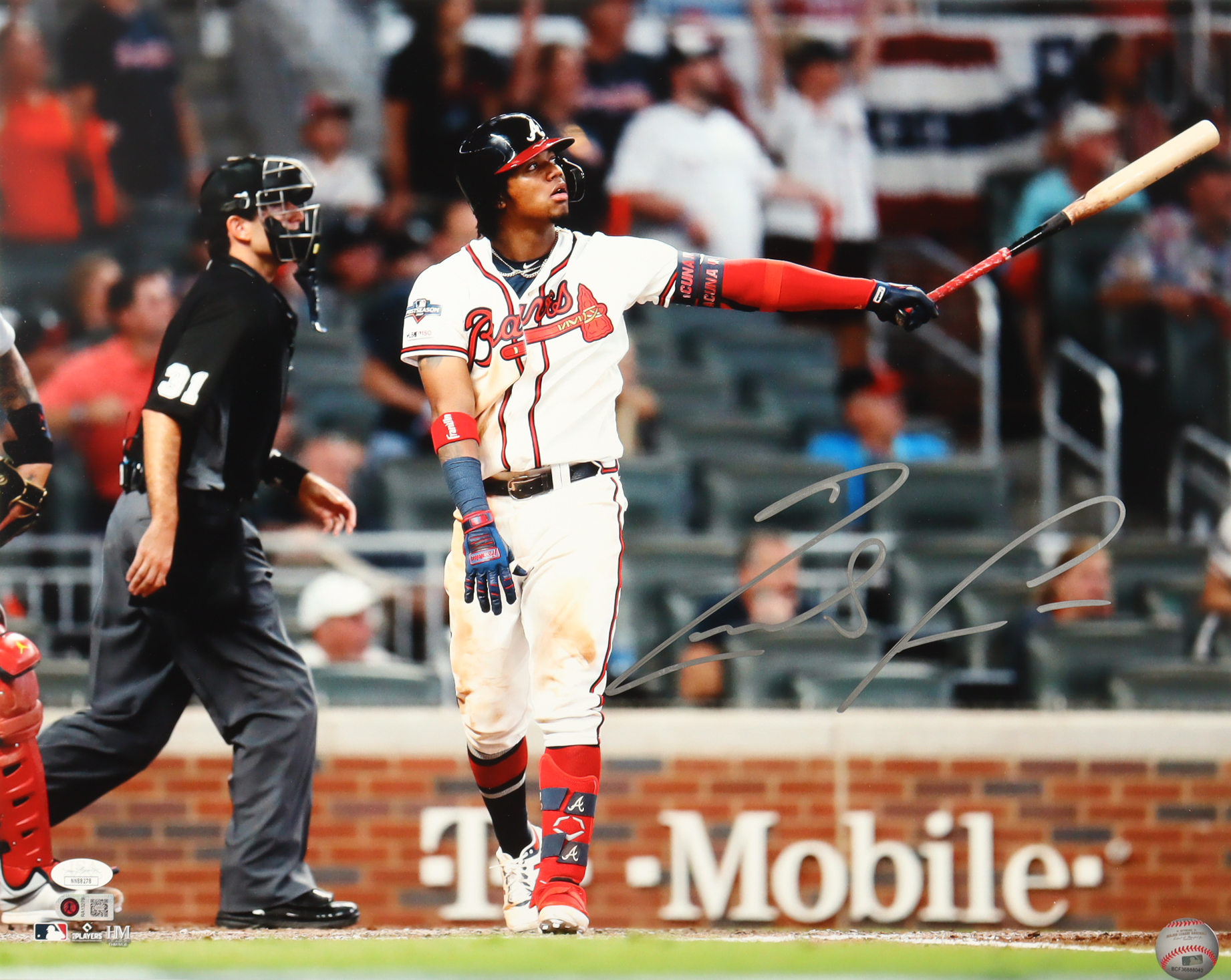 Photo measures 16" x 20" in size and has been hand-signed by Ronald Acuna (Atlanta Braves).