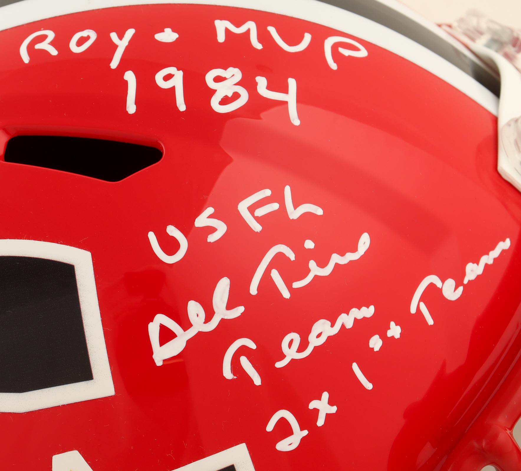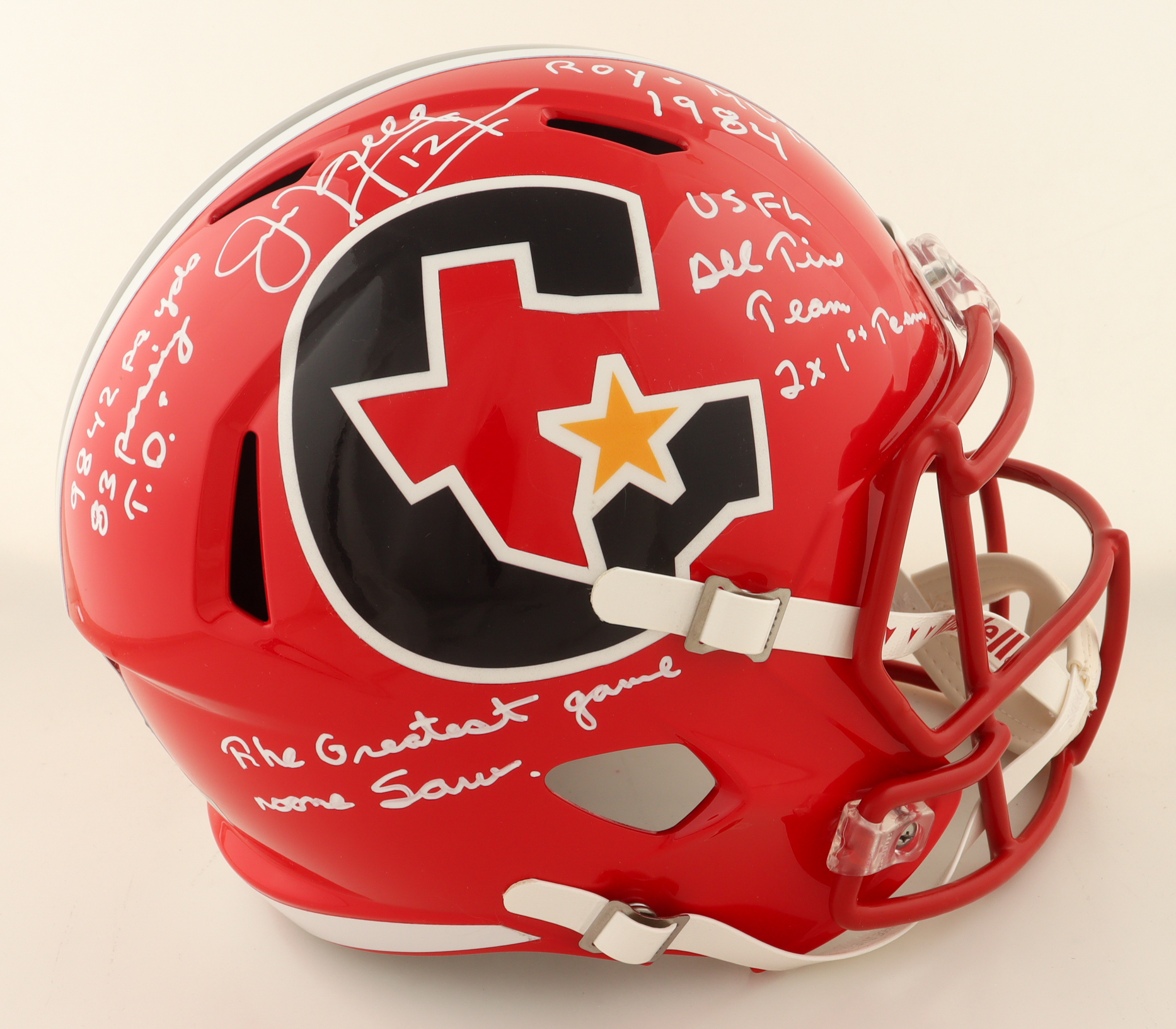 Riddell Houston Gamblers full-size replica speed helmet. Hand-signed and inscribed by Jim Kelly (HOF).