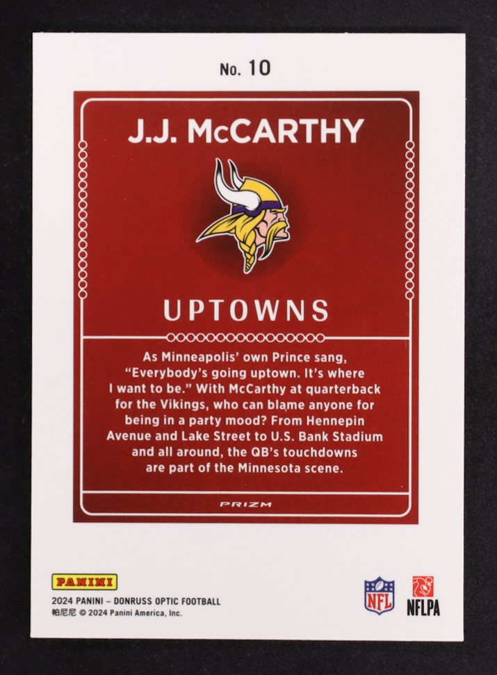 JJ McCarthy 2024 Donruss Optic Uptowns #10 RC