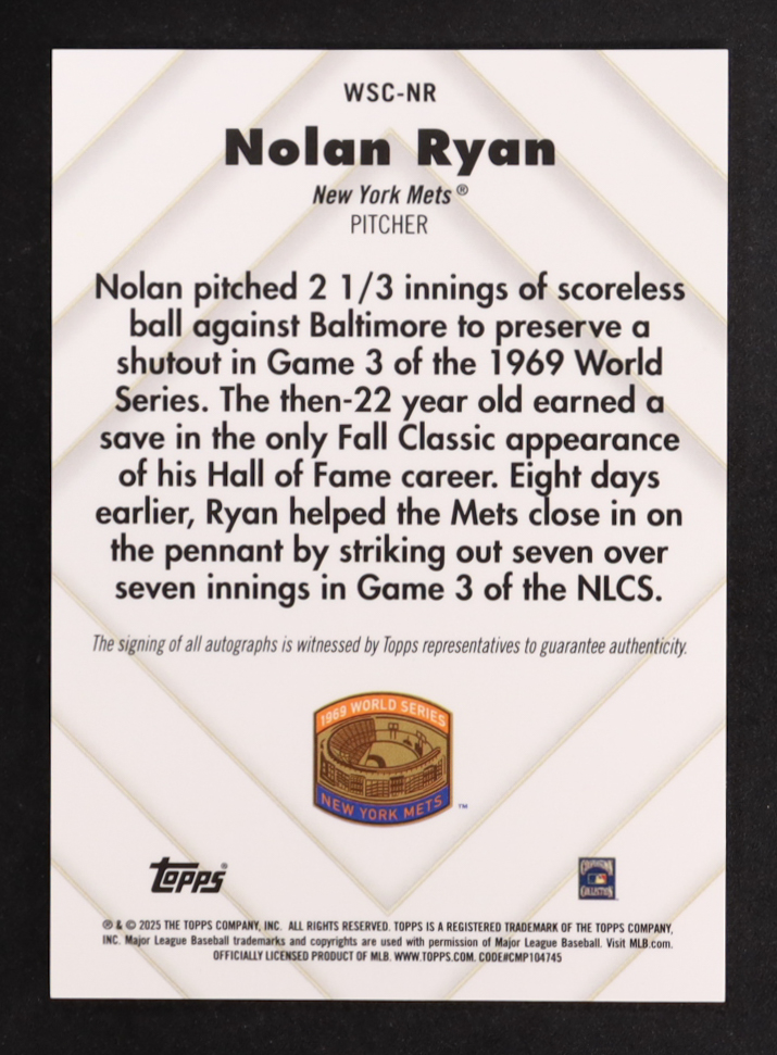 Nolan Ryan 2025 Topps Chrome World Series Champion Autographs Refractors #WSCNR #083/100