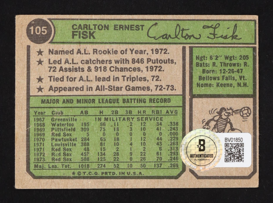Carlton Fisk Signed 1974 Topps #105 (Beckett)