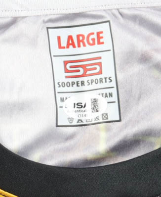 Sooper Sports jersey with everything printed on, size L Hand-signed by Usain Bolt.