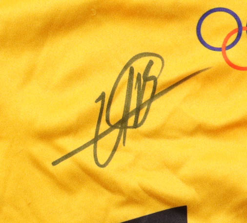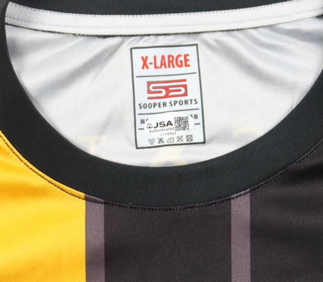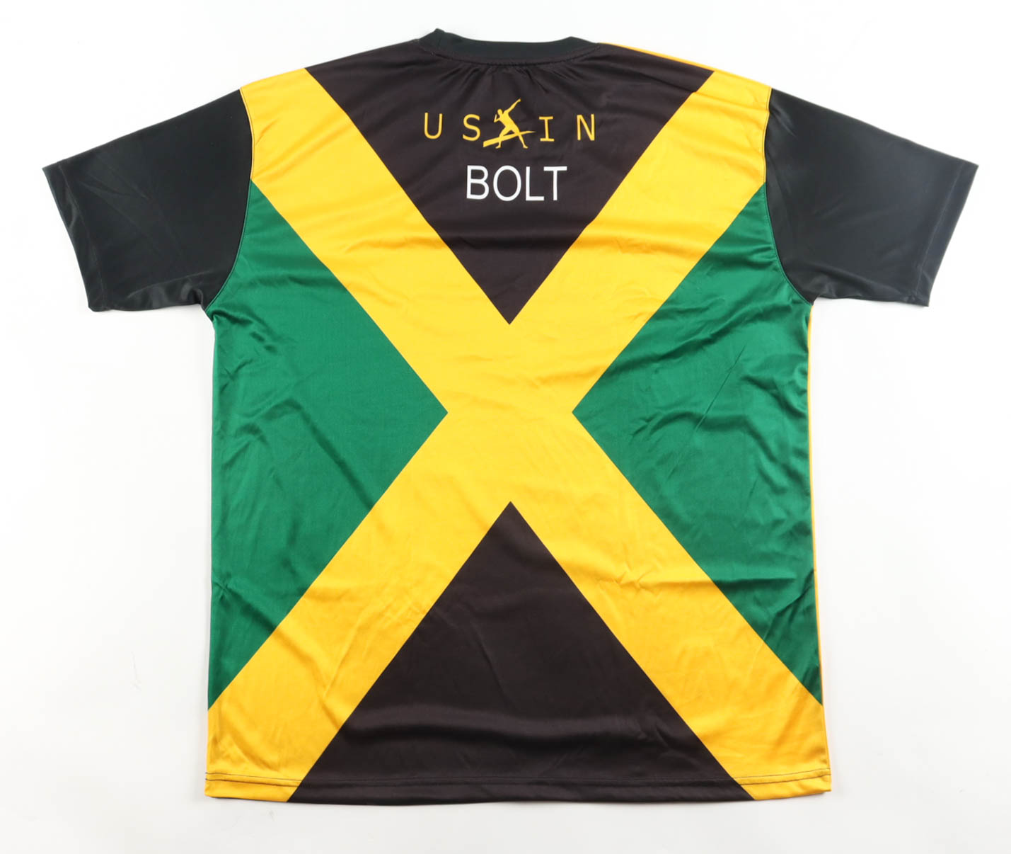 Sooper Sports jersey with everything printed on, size XL Hand-signed by Usain Bolt.