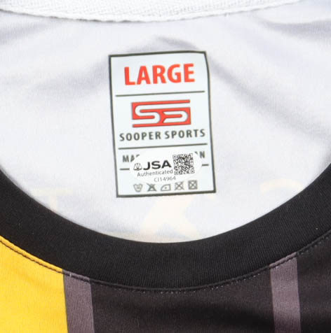 Sooper Sports jersey with everything printed on, size L Hand-signed by Usain Bolt.