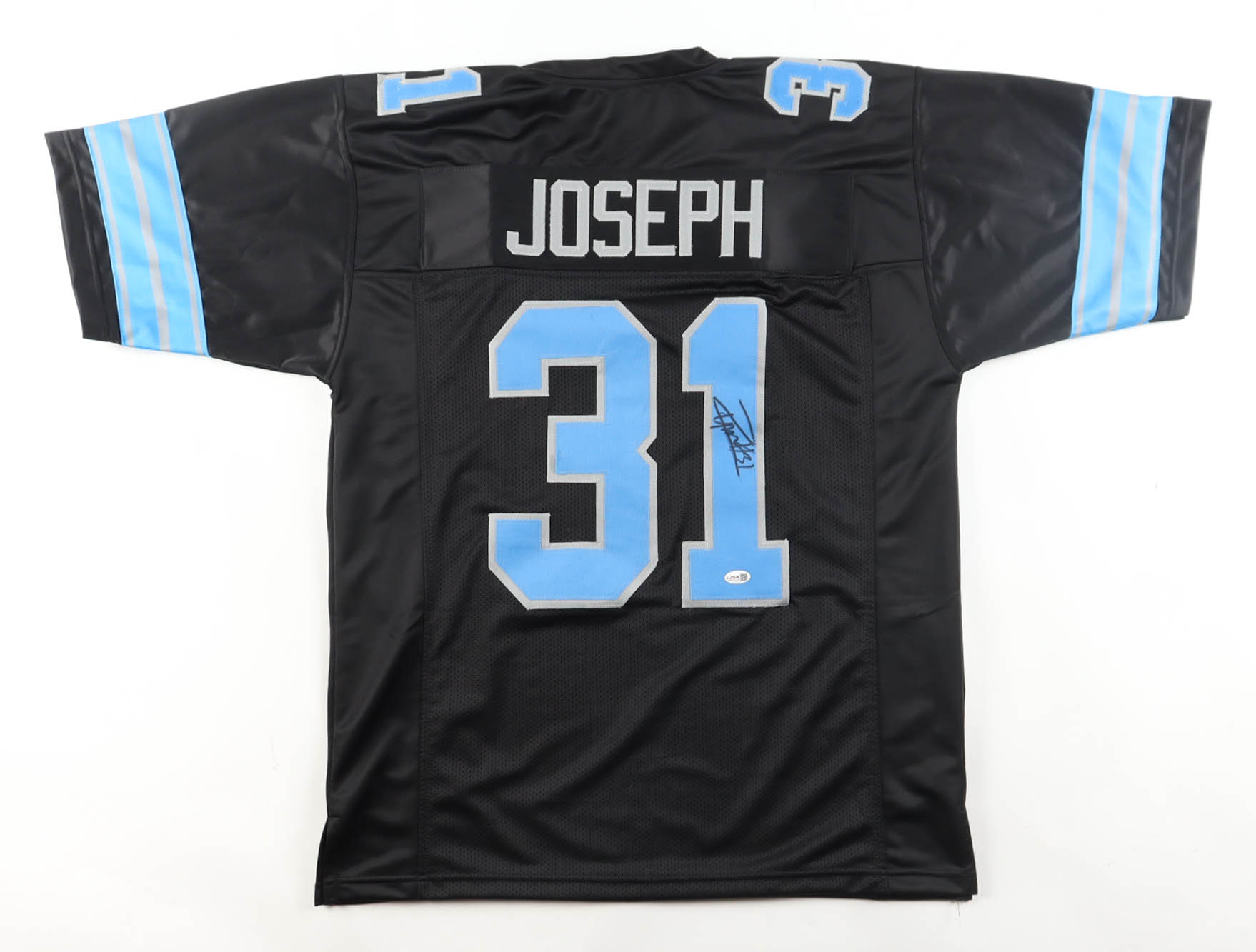 Custom jersey with everything sewn on, size XL. Hand-signed by Kerby Joseph.